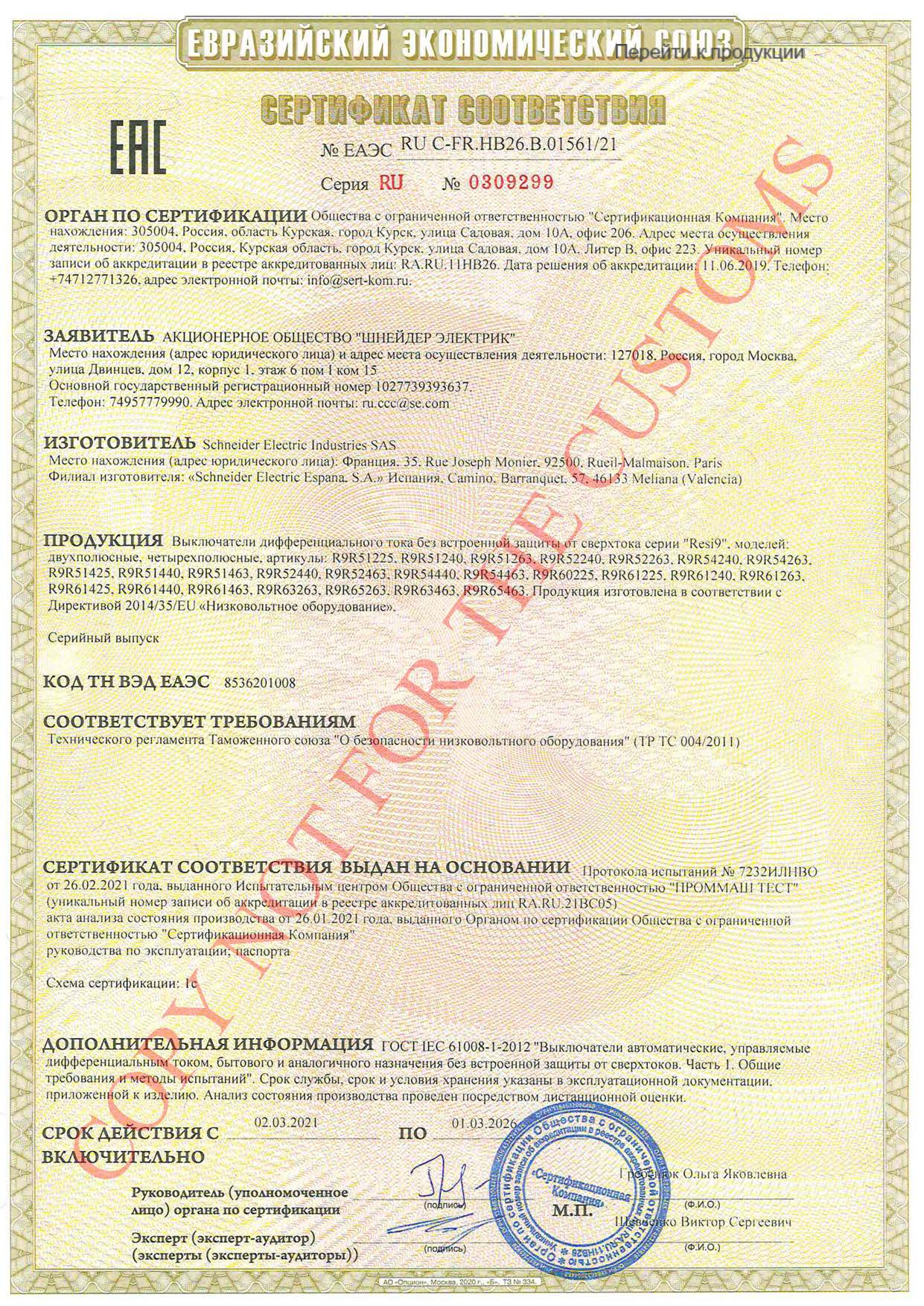 40A 2P 30мА тип АС /R9R51240/ дифференциалды тоқтың ажыратқышы