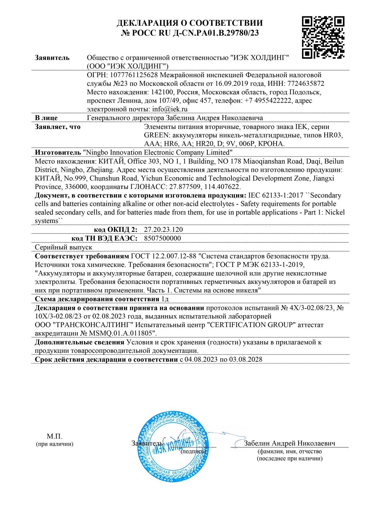 Аккумулятор GREEN Ni-MH AA 2700мАч (2дана/блистер) ИЭК