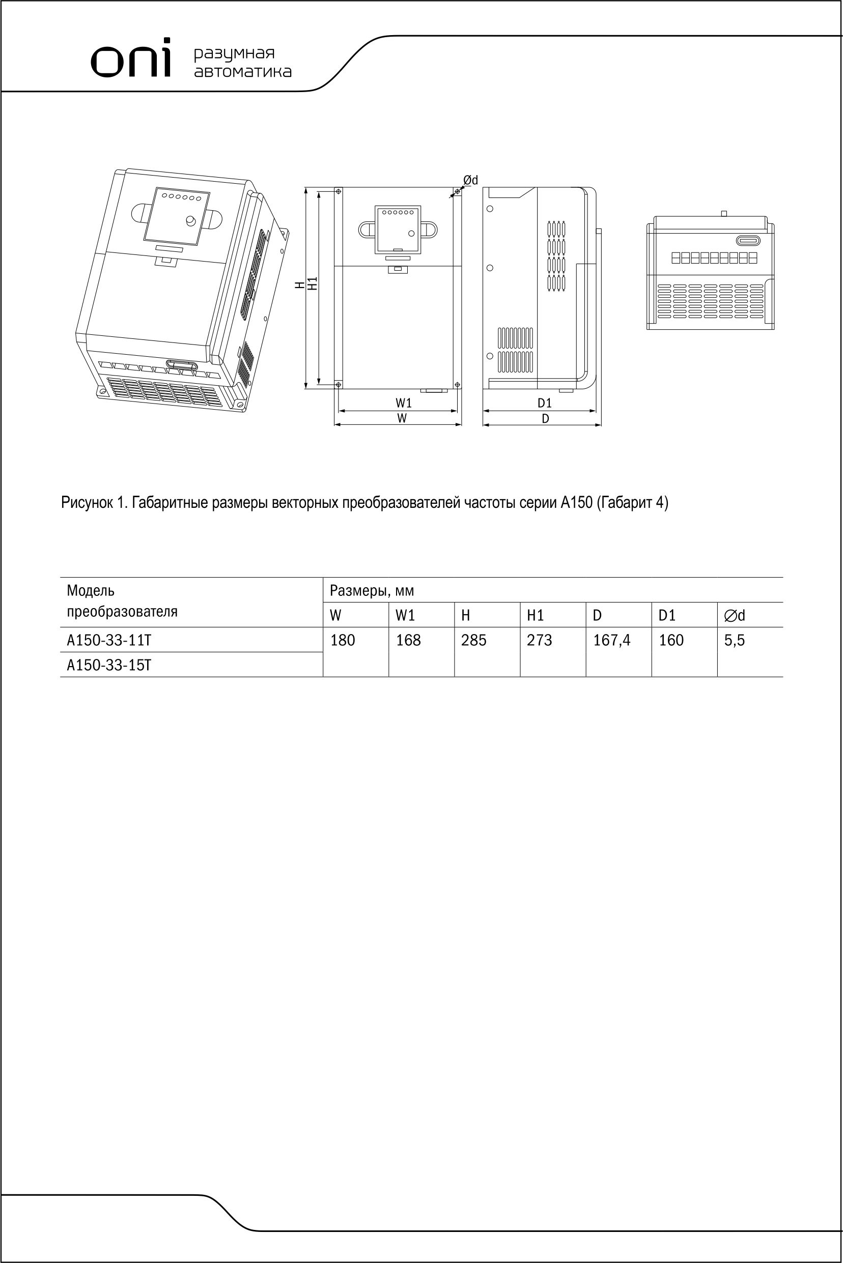 Жиілік түрлендіргіші A150 380В 3Ф 15кВт 32А кіріктірілген тежегіш модулі бар ONI