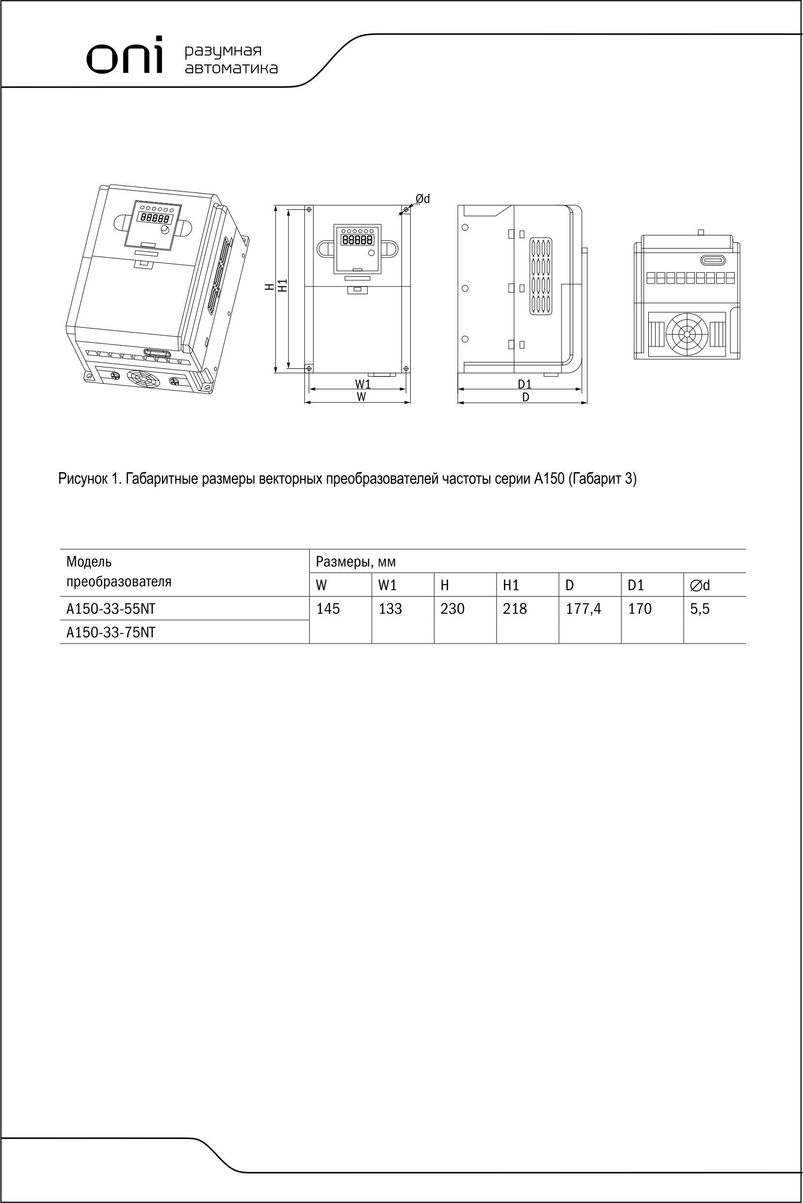 Жиілік түрлендіргіші A150 380V 3F 5,5 кВт 13A кіріктірілген тежегіш модулі бар ONI ИЭК