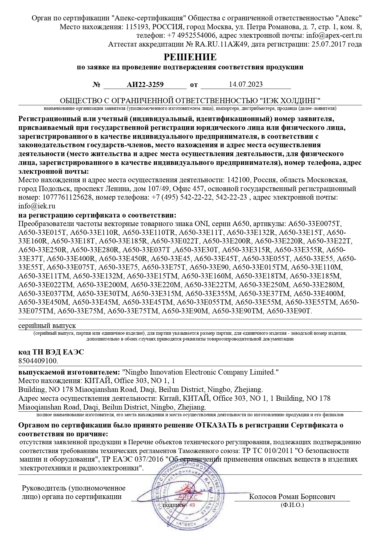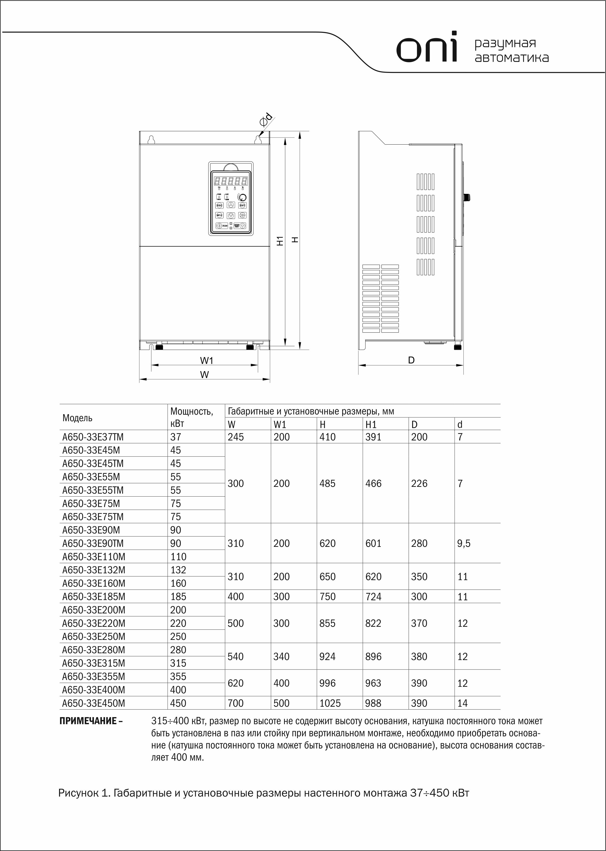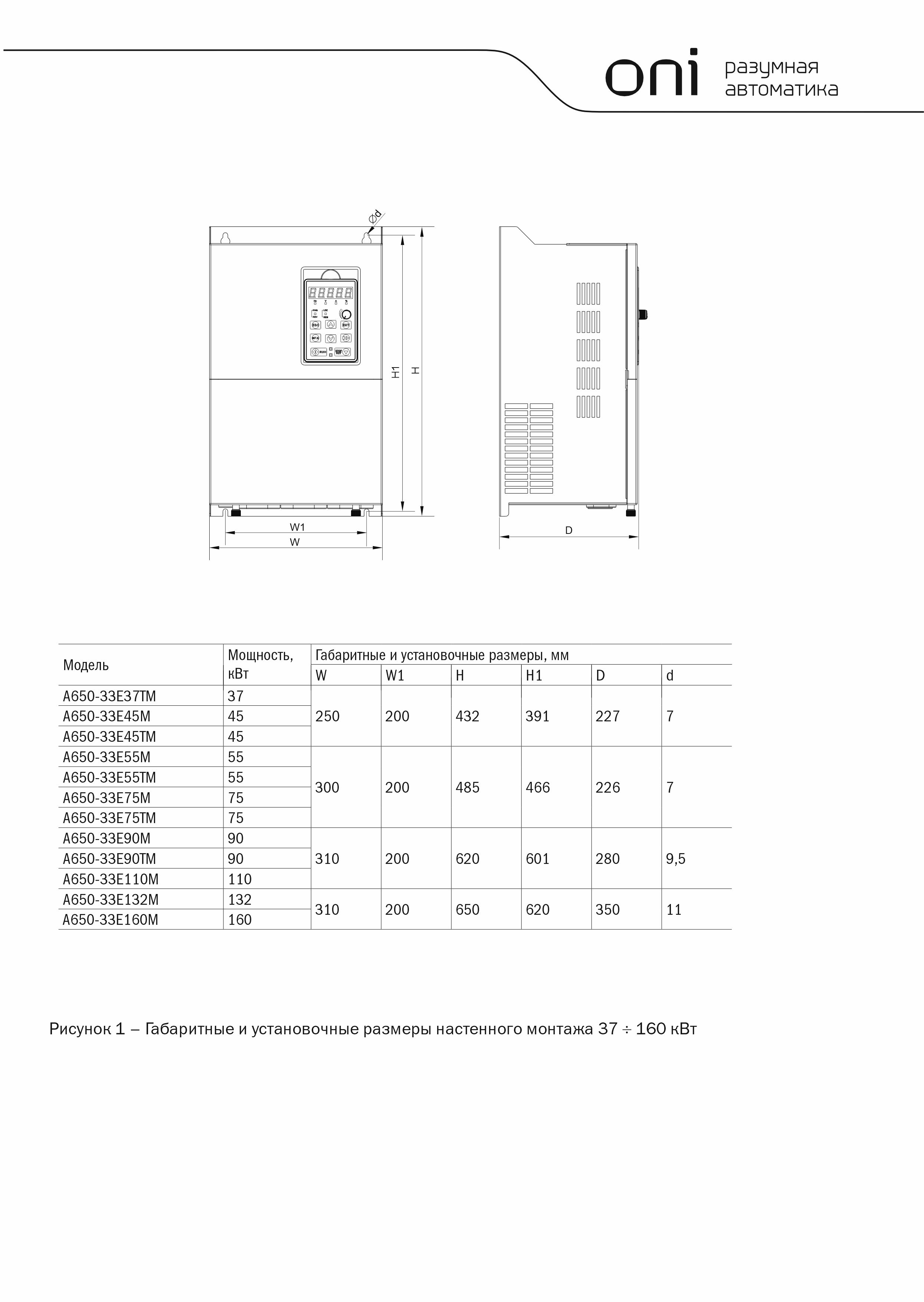 Жиілік түрлендіргіші A650 380В 3Ф 37kW 75А M ONI ИЭК