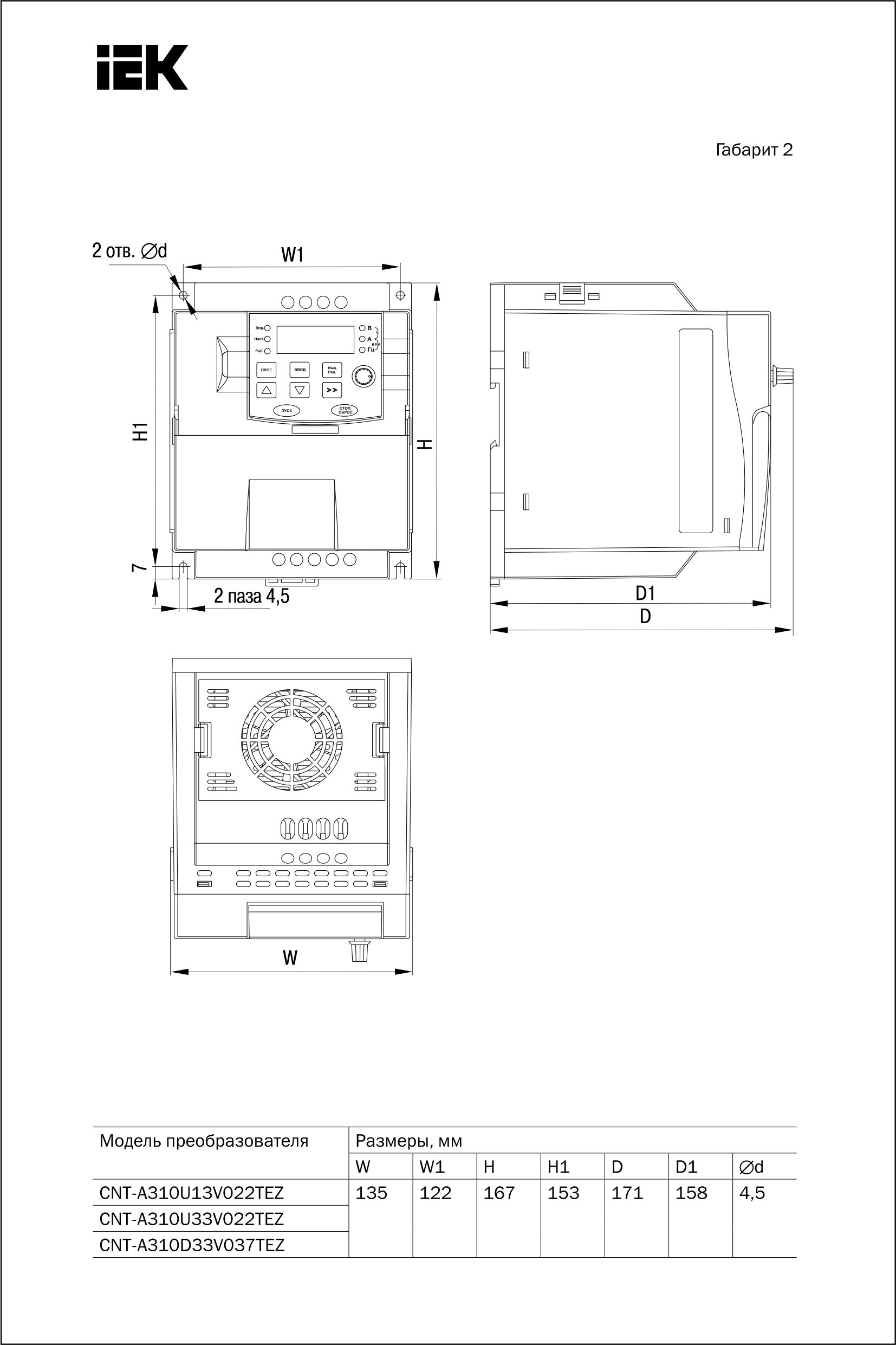 Жиілік түрлендіргіші CONTROL-A310 380V, 3Ф 3,7 kW 8,8 A ИЭК