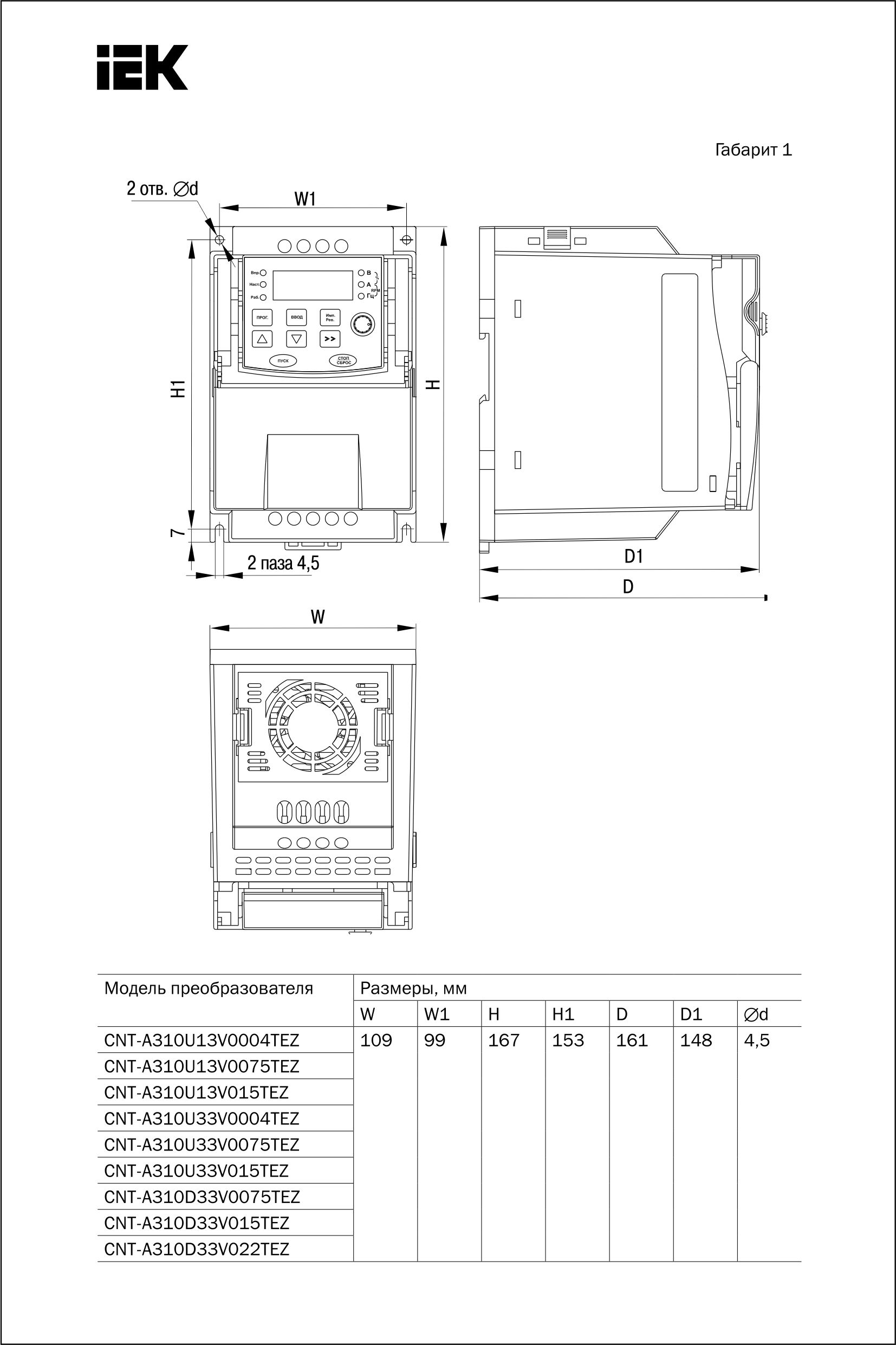 Жиілік түрлендіргіші CONTROL-A310 380В 3Ф 0,75кВт 2,3A IEK