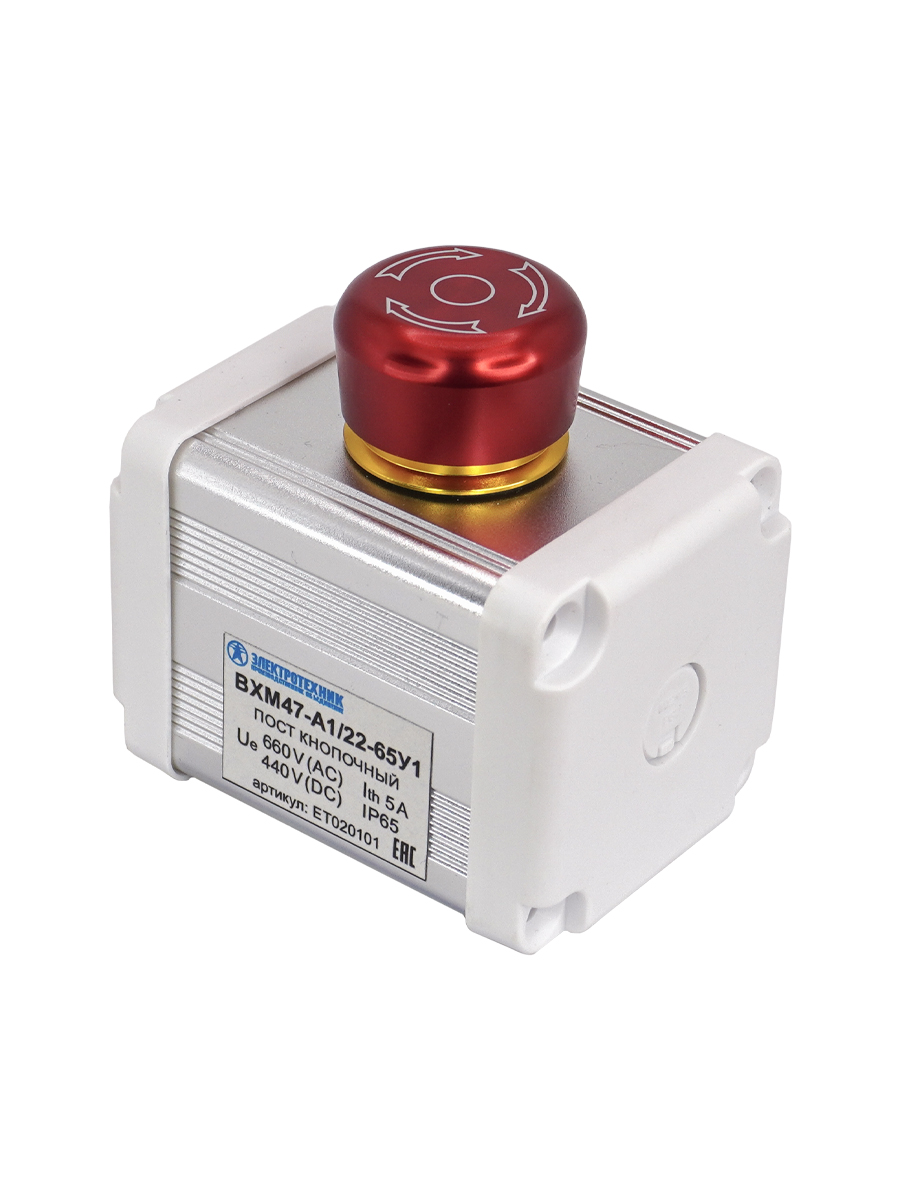 BXM47-A1/22-65У1 (1 қызыл саңырауқұлақ тәріздес перне, бекітумен (1C1NO1NC)), басқару посты (ЭТ)