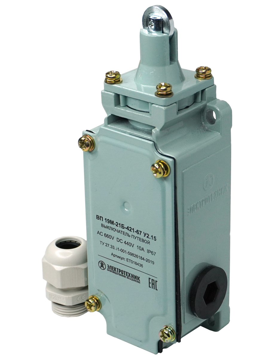 ВП 19М-21Б-421-67 У2.15, төрт полюсті, роликті итергіш, 1з+3р, IP67, жолды ажыратқыш (ЭТ)