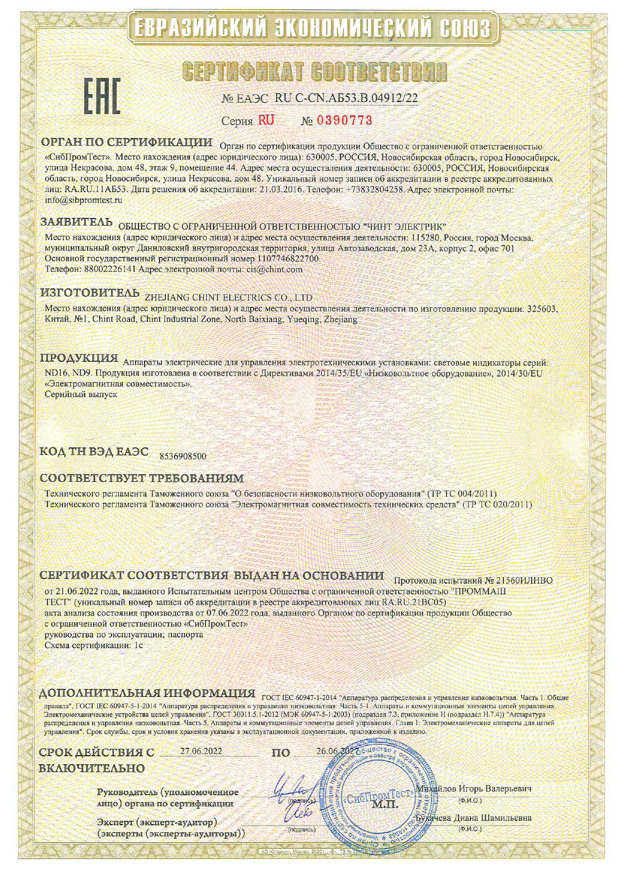Жарық индикаторы ND16-22DS/2 Сары АС/DC24B (CHINT) 592939