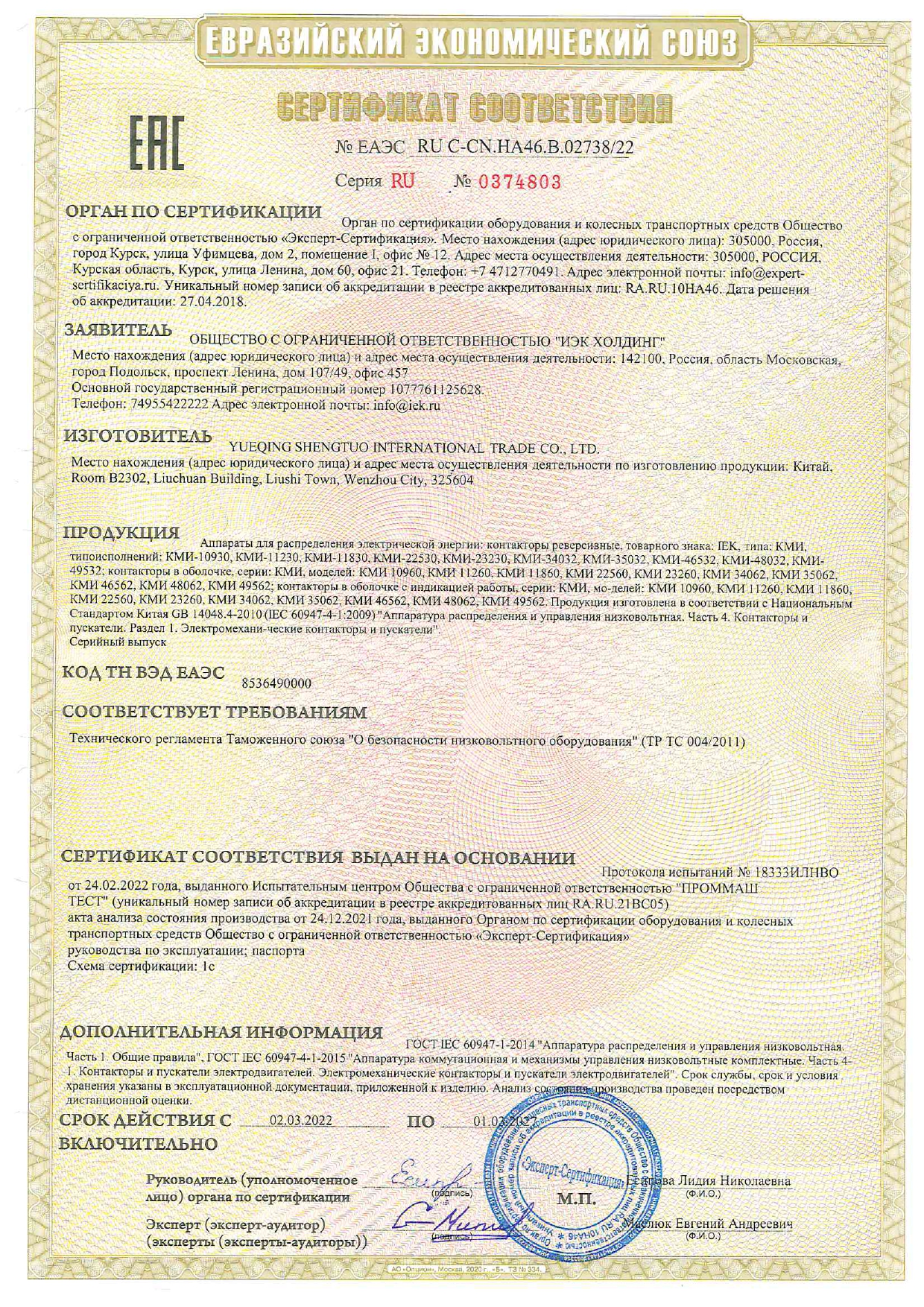 Контактор КМИ-35062 50А қабықшада 380В ИЭК