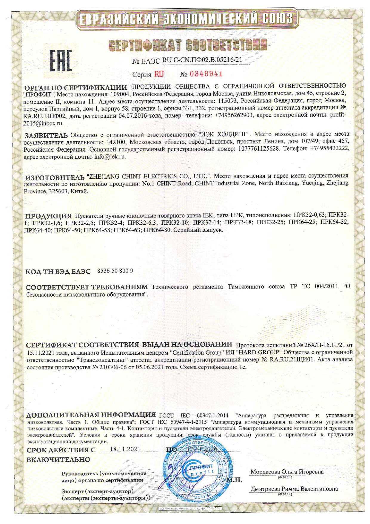 ПРК Босатқыштар, пернелі, ПРК сериялы, сертификаттау сынақтарынан өтті және олардың сериялық шығарылымына РОСС С-МЕ01.В04759 сәйкестік сертификаты алынды.