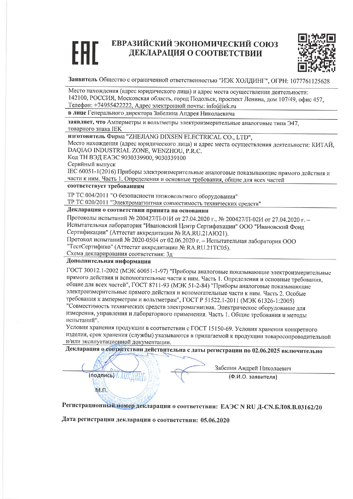 Амперметр Э47 10А дәлдік класы 1,5 96х96мм ИЭК