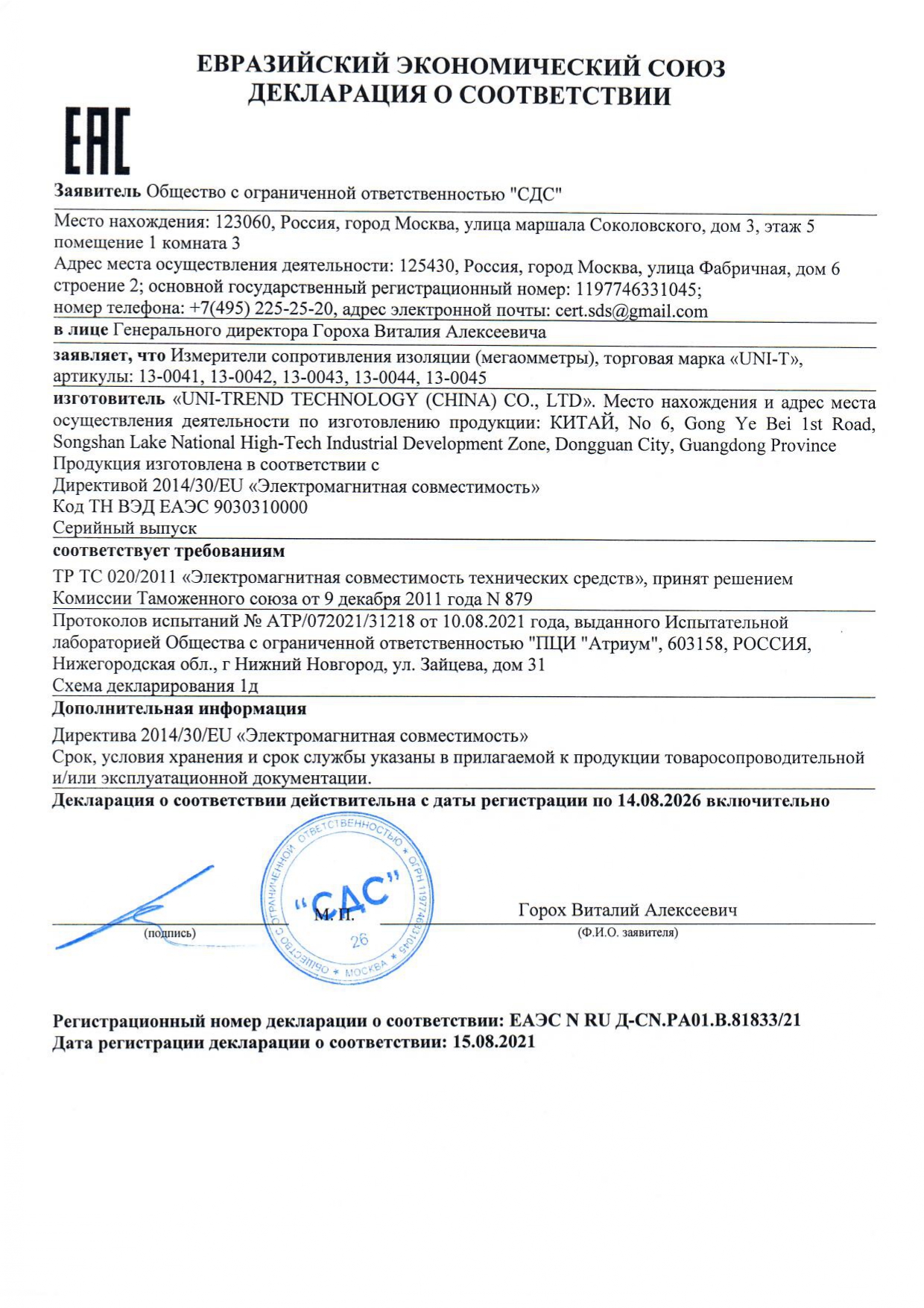 Оқшаулау кедергісін өлшегіш UNI-T UT502A