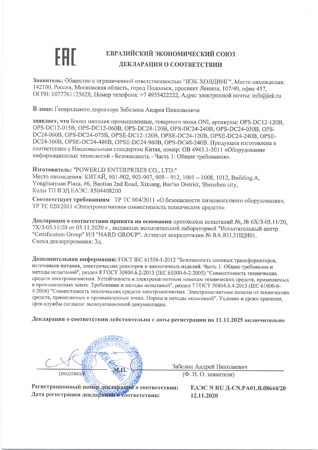 Кеңейтілген сипаттамалары бар OPSE қуат көзі 220В AC/24V DC 5A 120W ONI