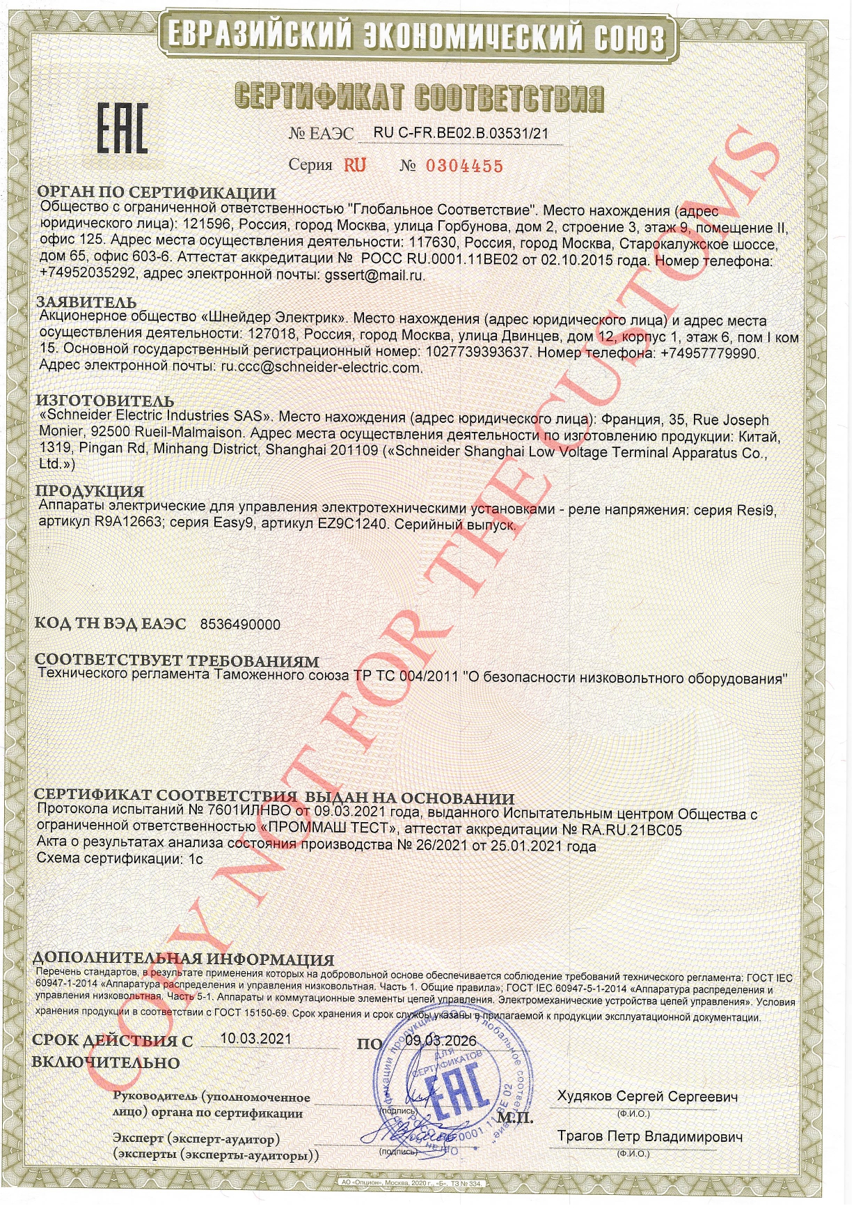 Кернеу релесі Easy9 1P+N 40A, 230В =S= /EZ9C1240/