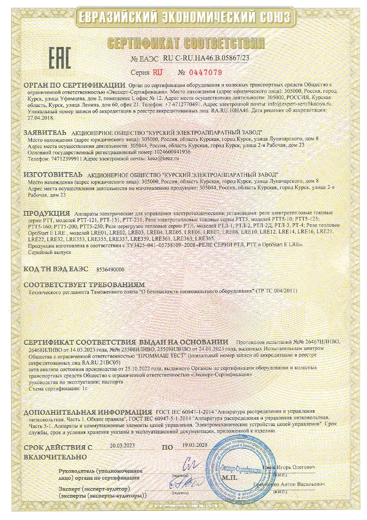 RTL-1005-2-25A-(0,63-1А)-UHL4-KEAZ термиялық шамадан тыс жүктеме релесі