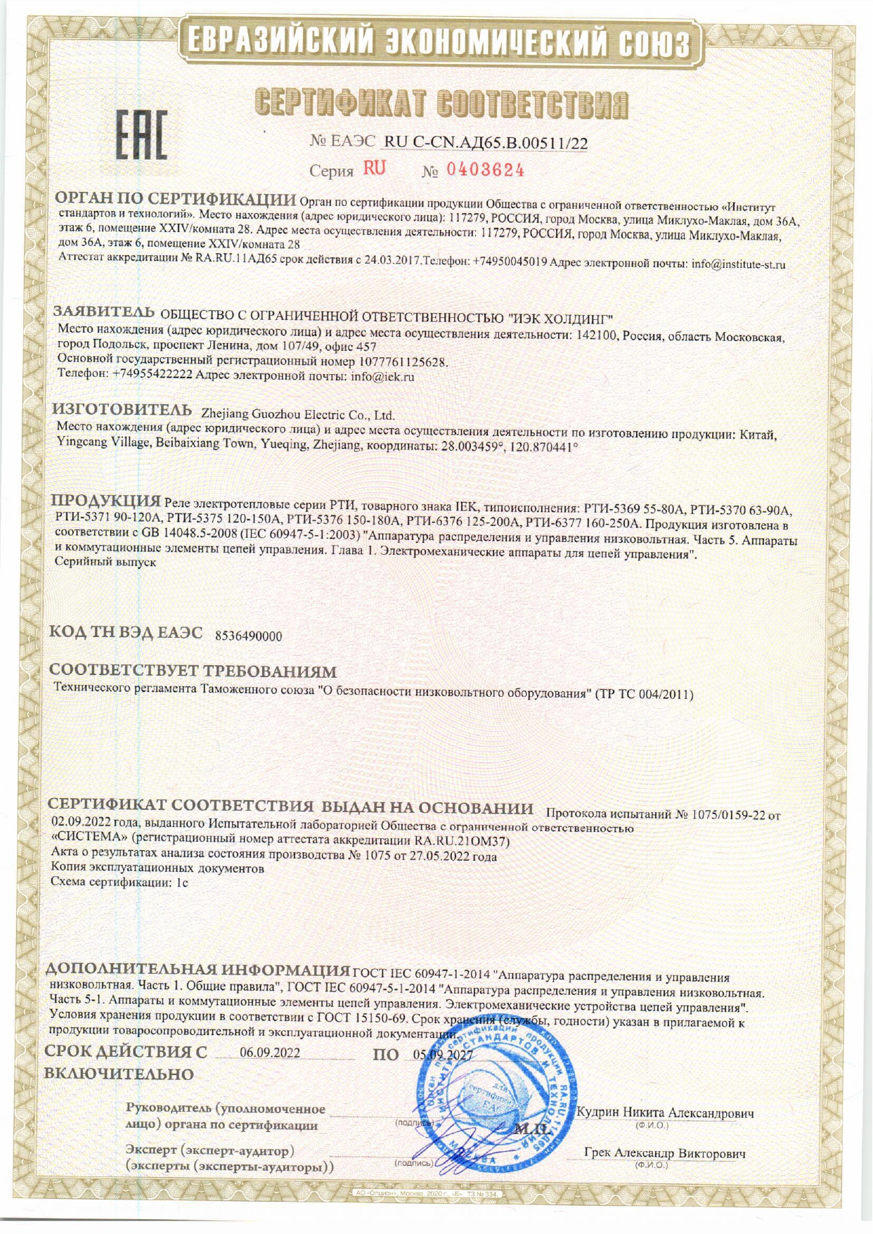Реле RTI-5371 электржылулық 90-120 А (ИЭК)