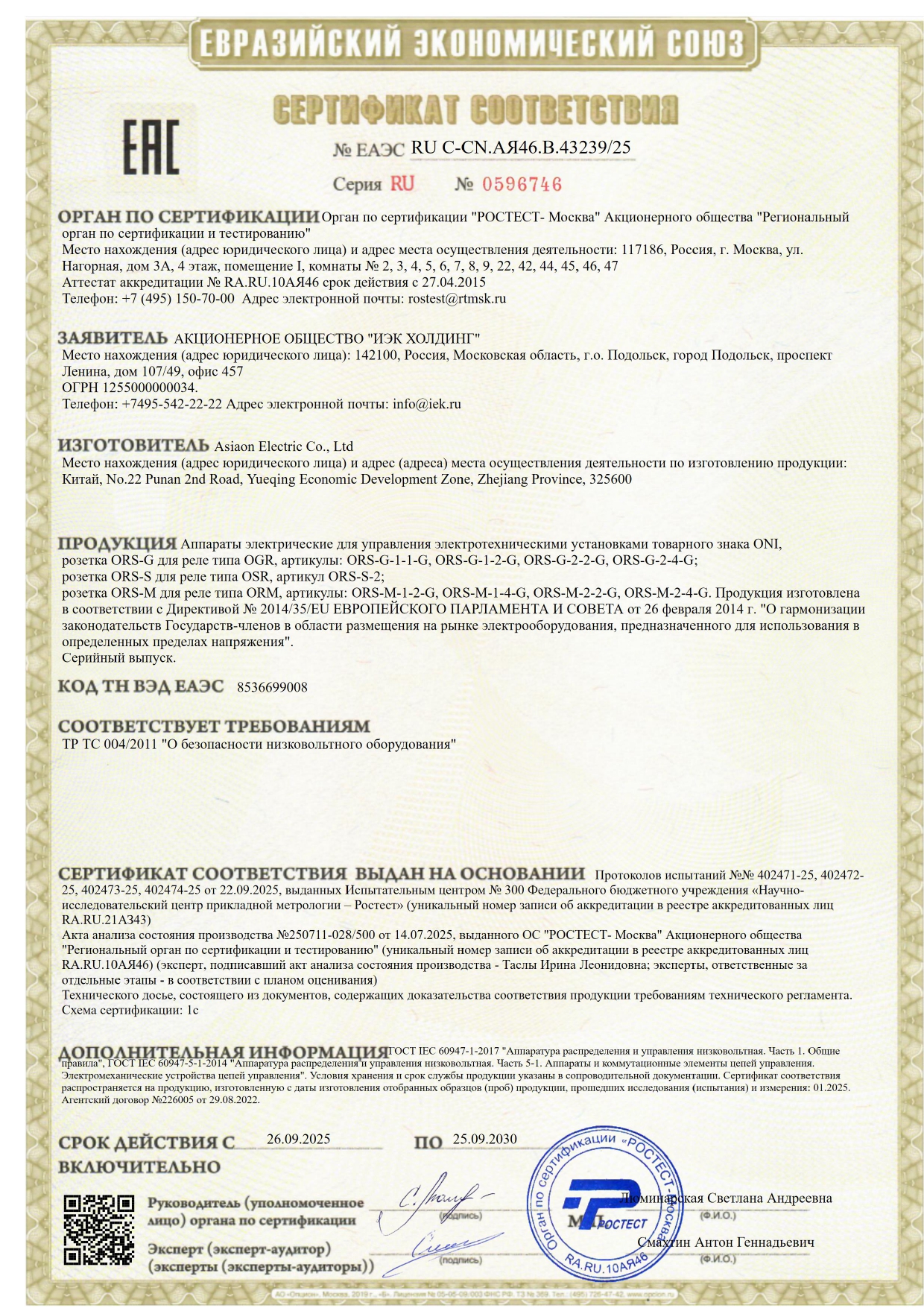 Розетка ORS-G-1-2 релеге арналған OGR-1 2C ONI ИЭК