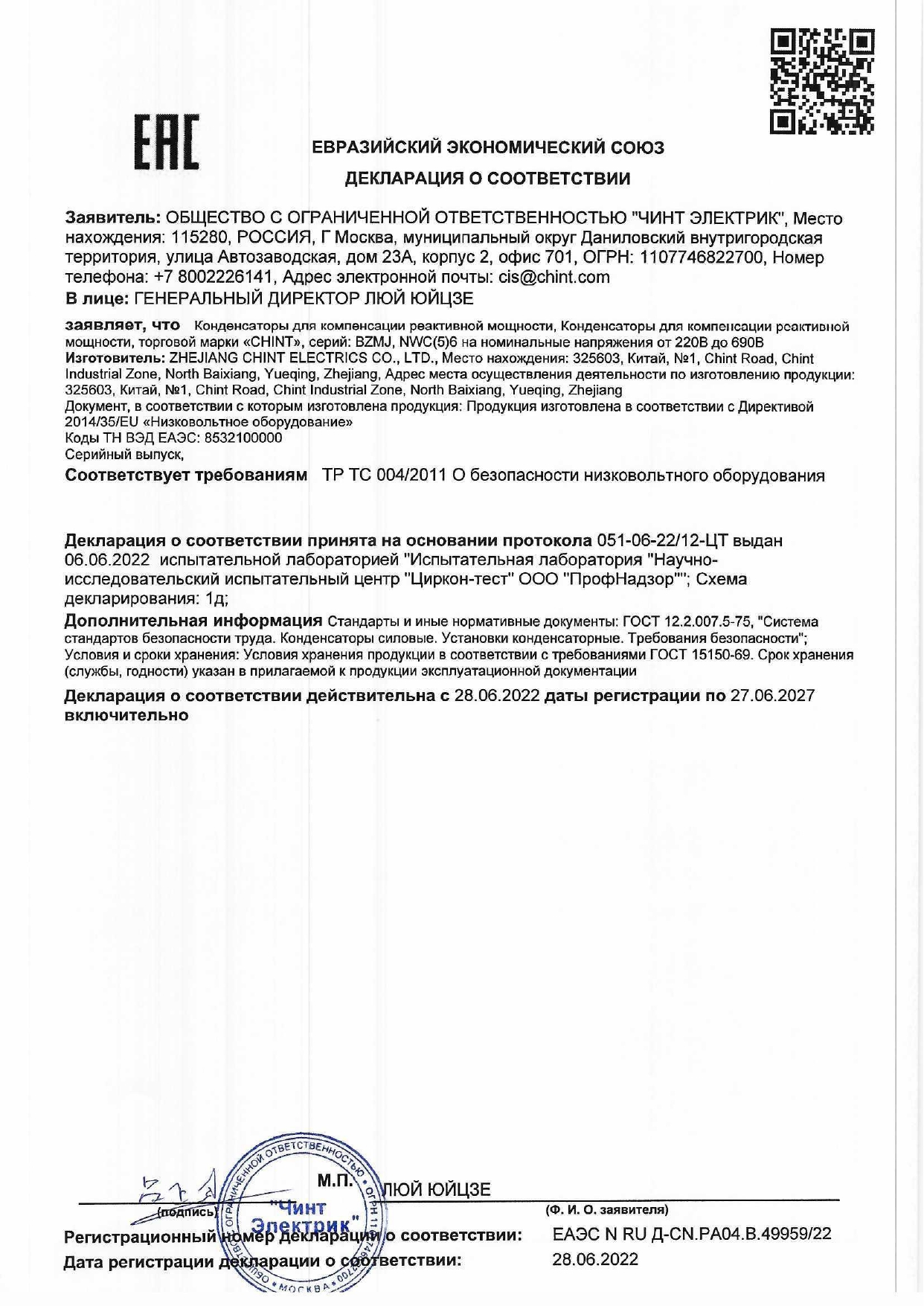 Үш фазалы конденсатор NWC6-0.45-10-3, АС450В, 10кВАр (CHINT) 799034