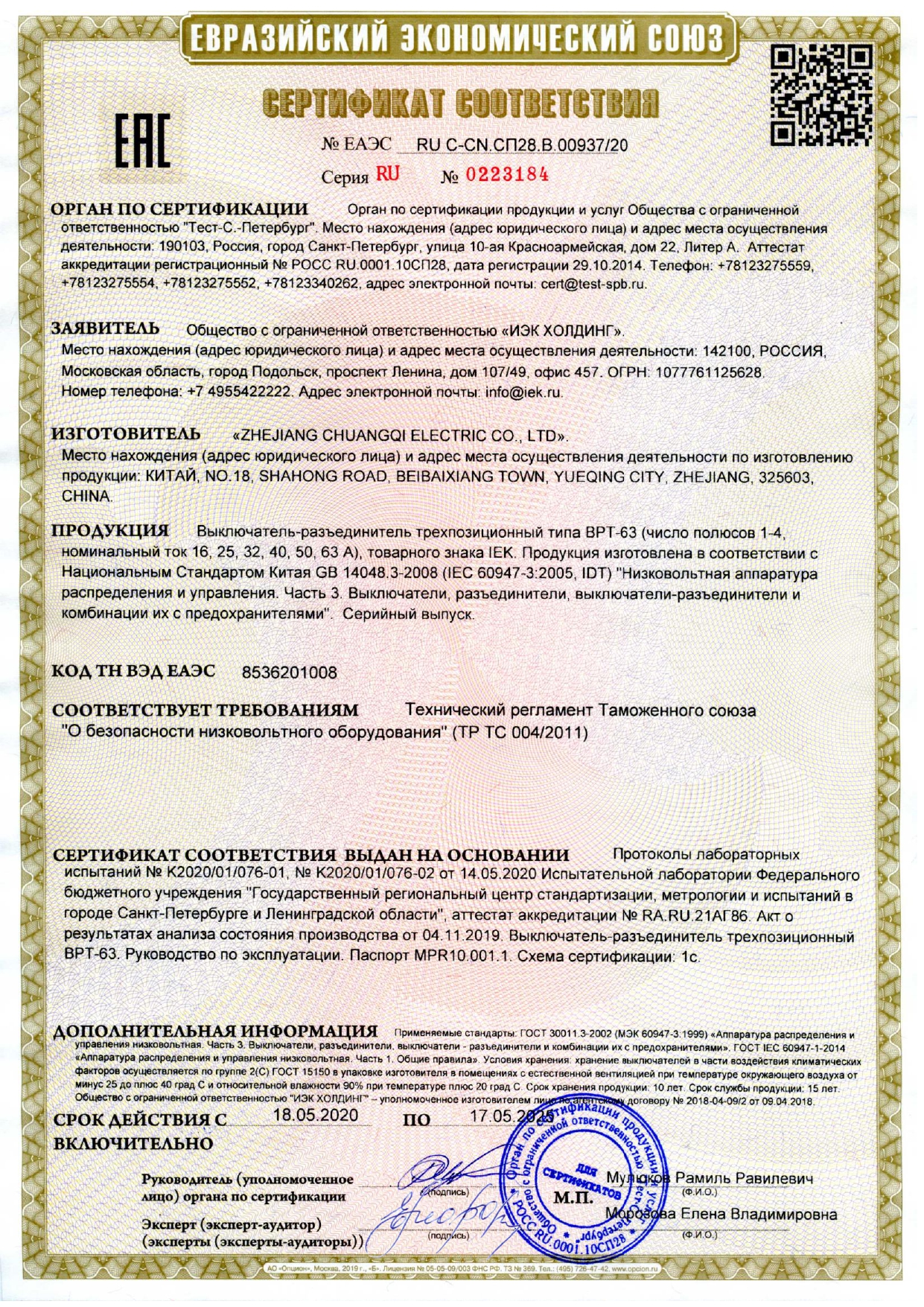 Ажыратқыш-айырғыш үш позициялы ВРТ-63 3P 25А ИЭК