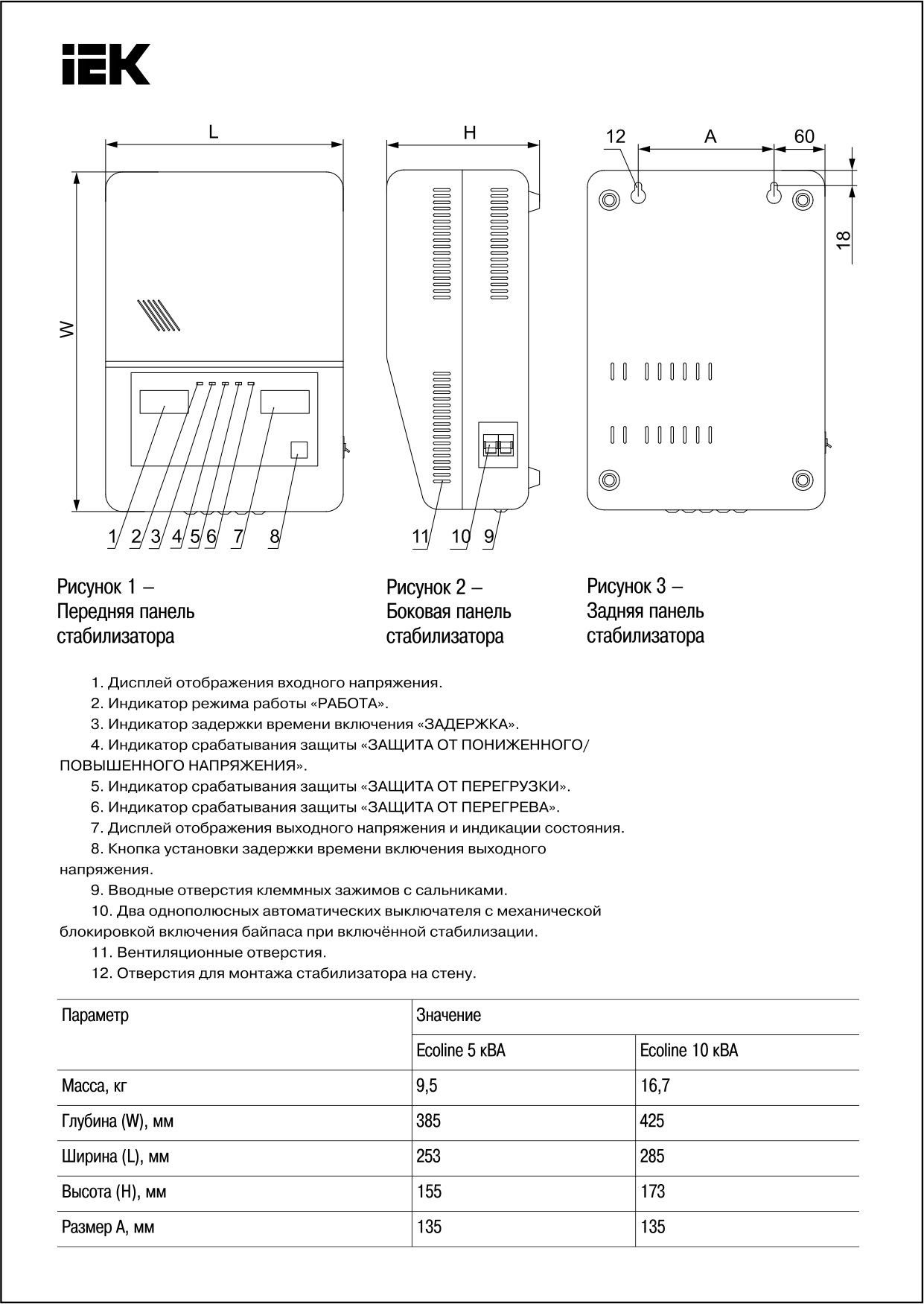 Кернеу тұрақтандырғышы, қабырғалы, серия Ecoline 5 кВА IEK