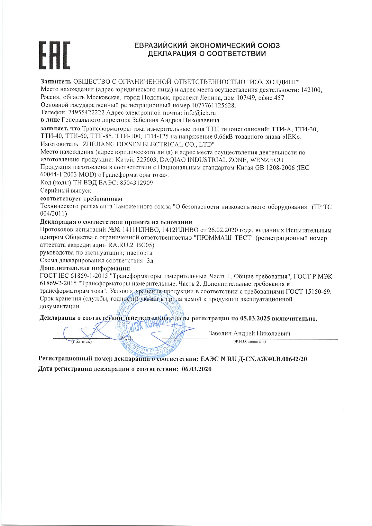 Тоқ трансформаторы ТТИ-40 300/5А 5ВА класы 0,5 ИЭК