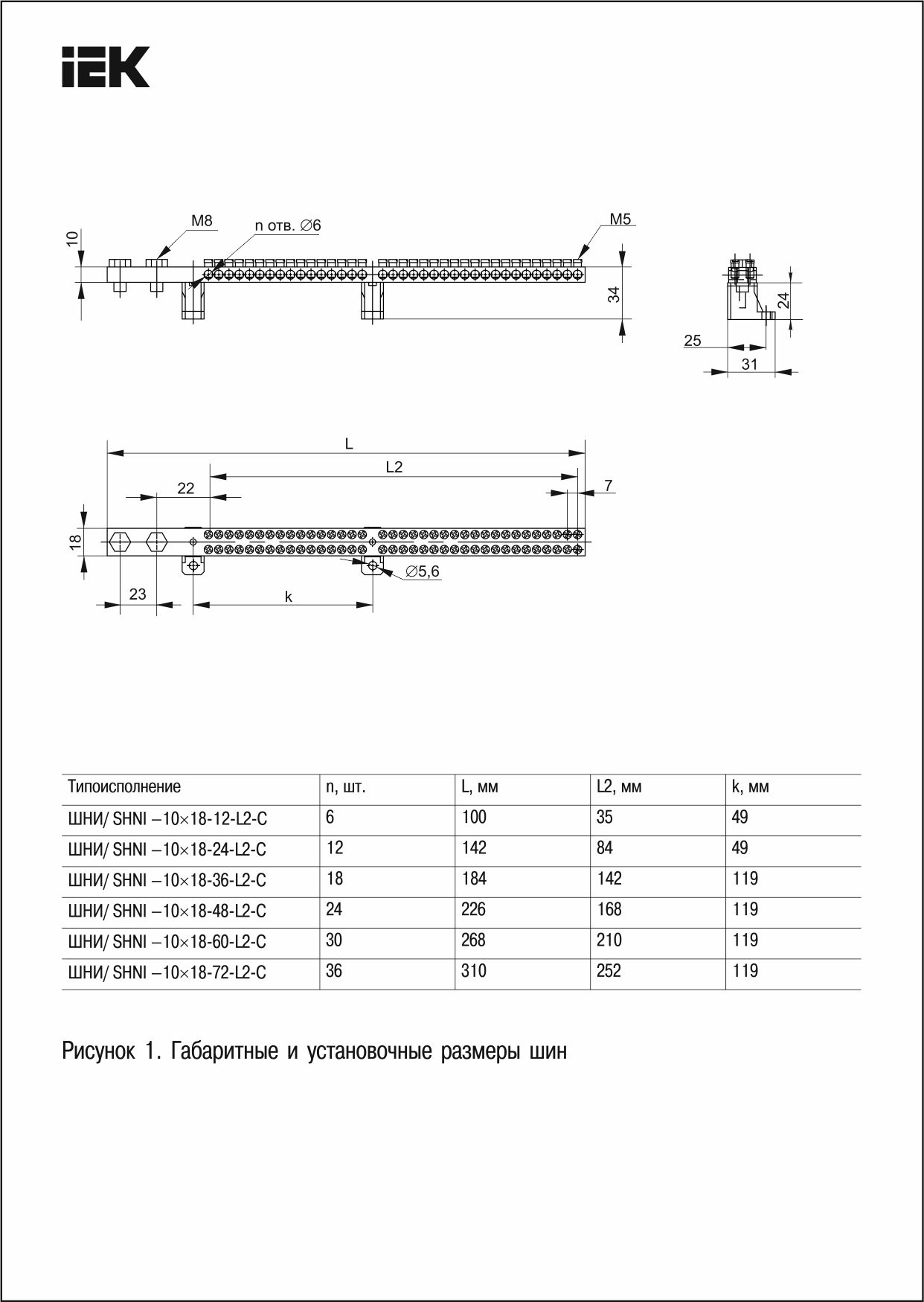 Шина N "ноль" екі бұрыштық оқшаулағышында 200А ШНИ-10х18-12-L2-С ИЭК