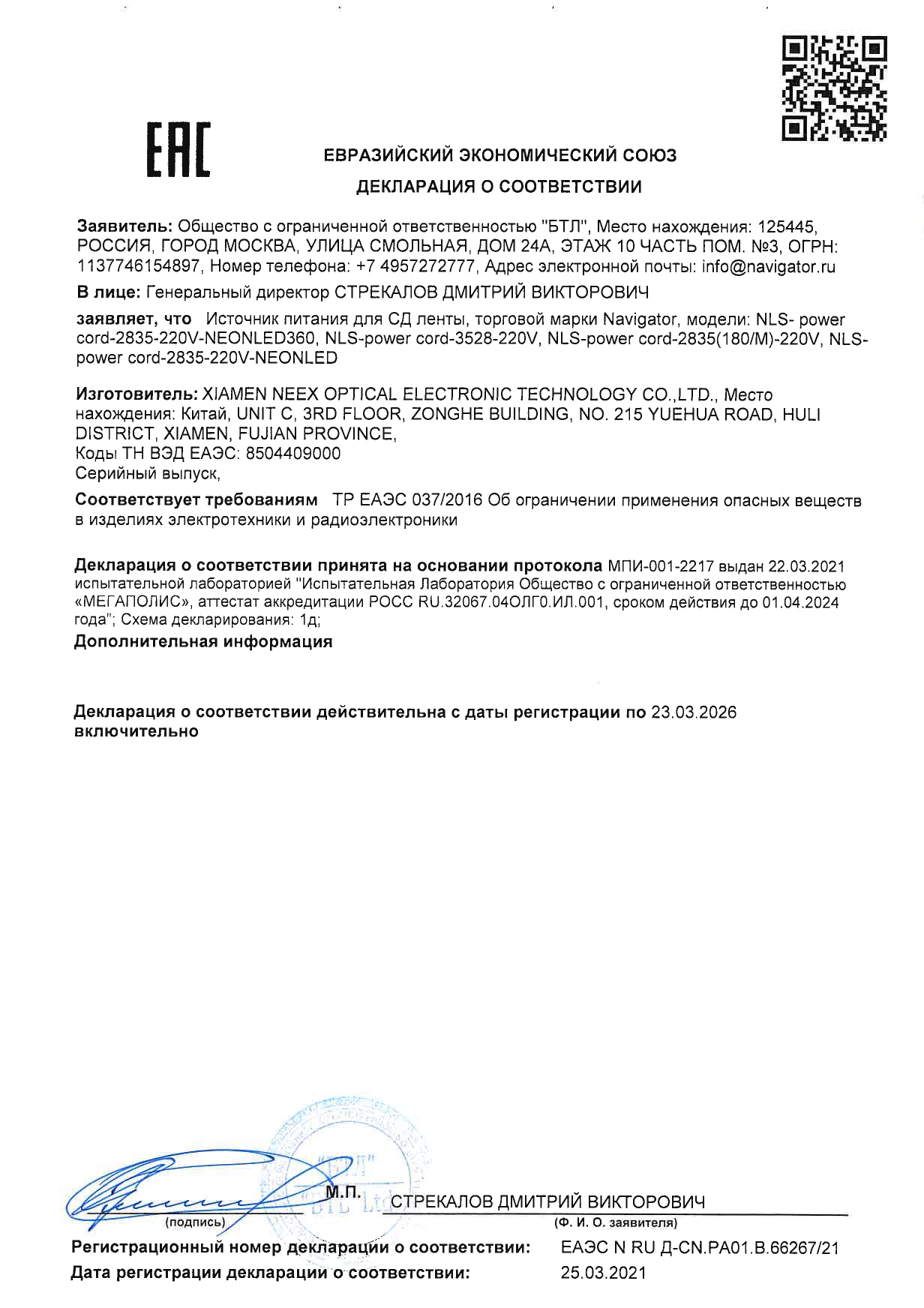 Драйвер NLS-power cord-3528-220V 14 520 Navigator