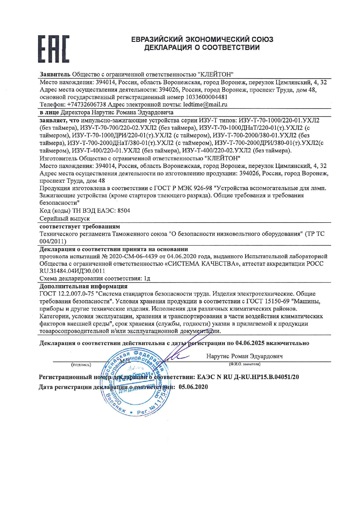 ИЗУ - Импульсті тұтандырғыш құрылғы Т70-700/220-02 таймерсіз