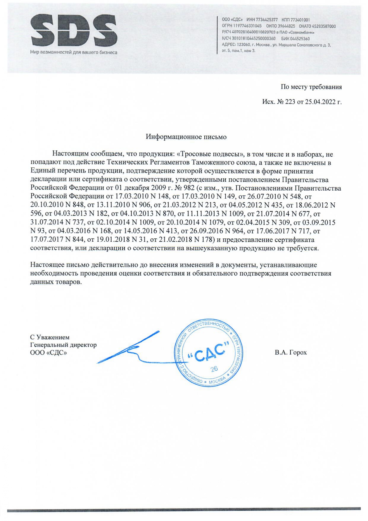 Кабель болаттан жасалған және аспа ұзындығы реттелетін өздігінен ұстағыштармен жабдықталған. Бекіту элементтерінің материалы-мырышталған металл. Жиынтықта екі кабель бар, әрқайсысының ұзындығы 2 метр.
