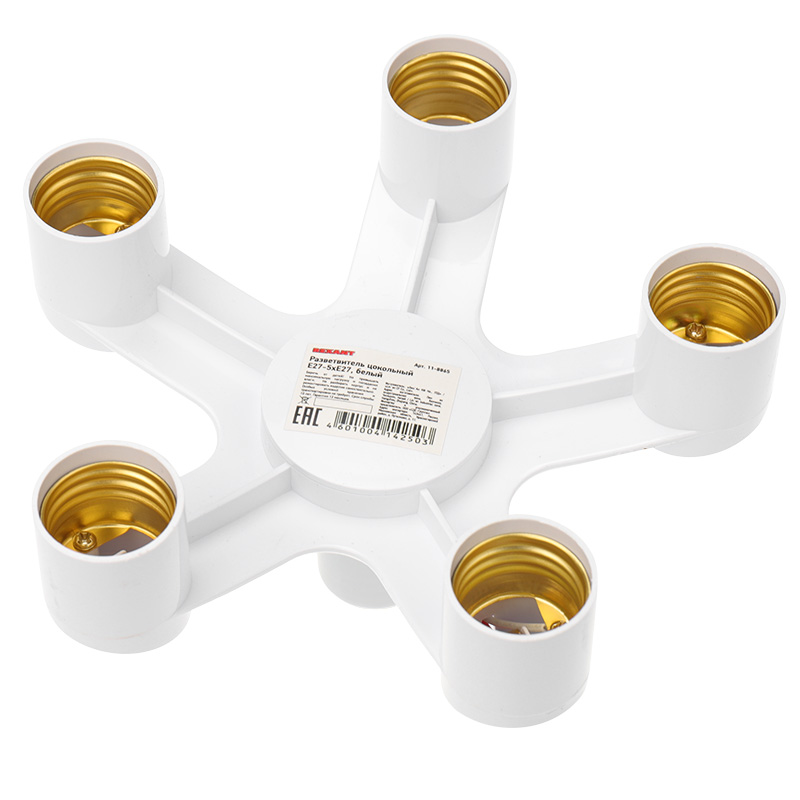 Тармақтағыш, цокольді Е27-5хЕ27 ақ REXANT