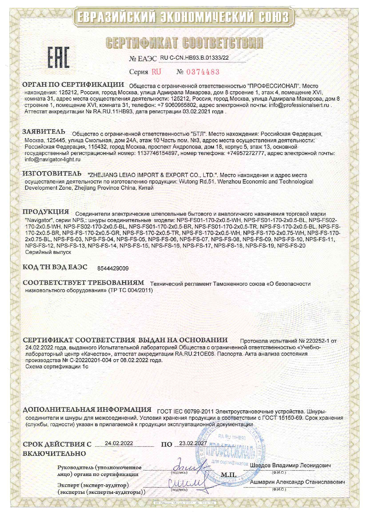 Сым NPS-FS-170-WH 2*0,75 1,7м ажыратқышпен ақ 94 667 Navigator