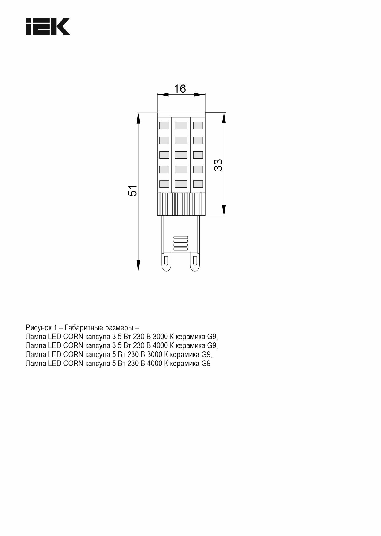 Шам LED CORN капсула 5Вт 230В 3000К керамика G9 ИЭК