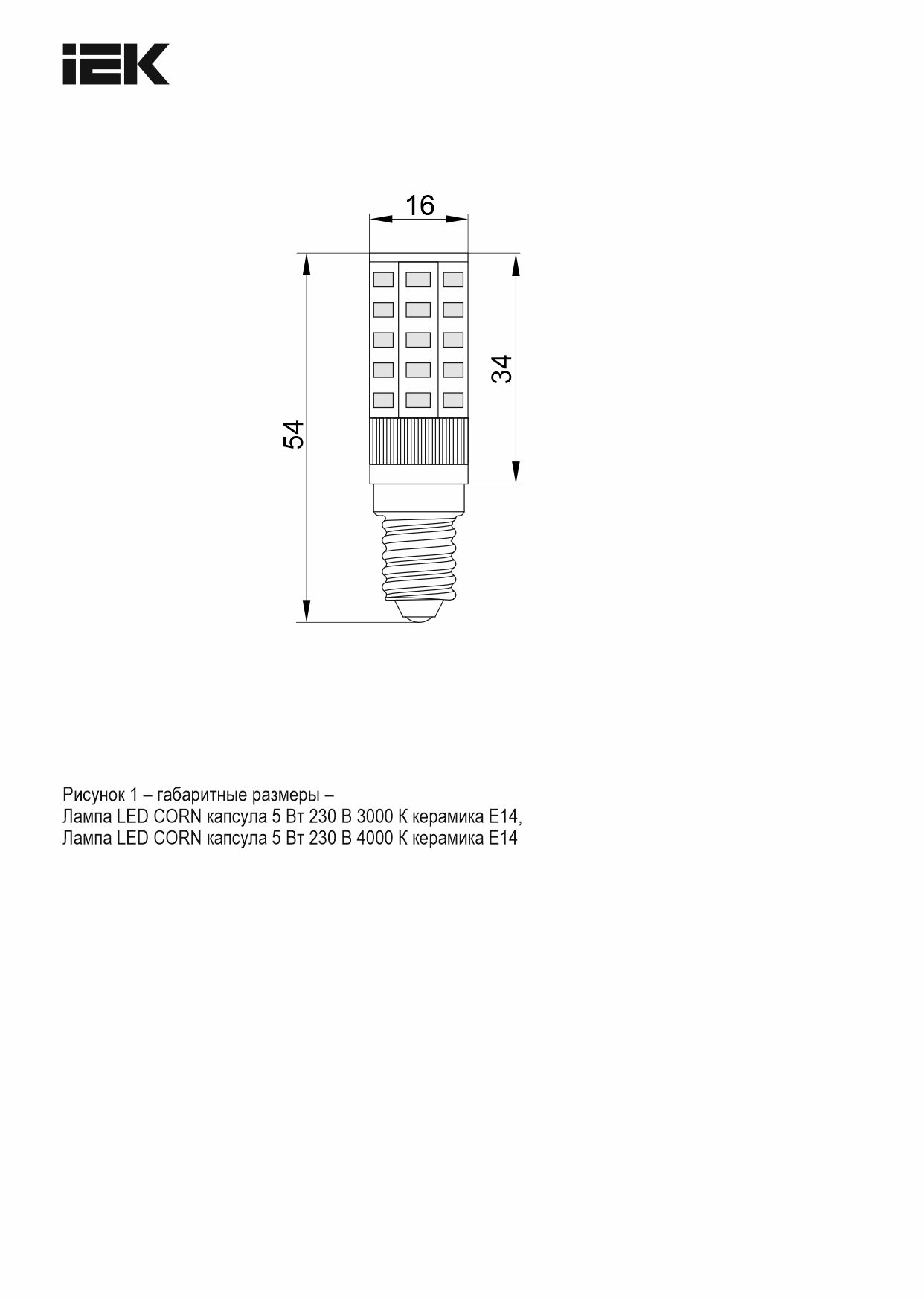 Жарықдиодты шамшырақ CORN капсула 5Вт 230В 3000К керамика E14 IEK