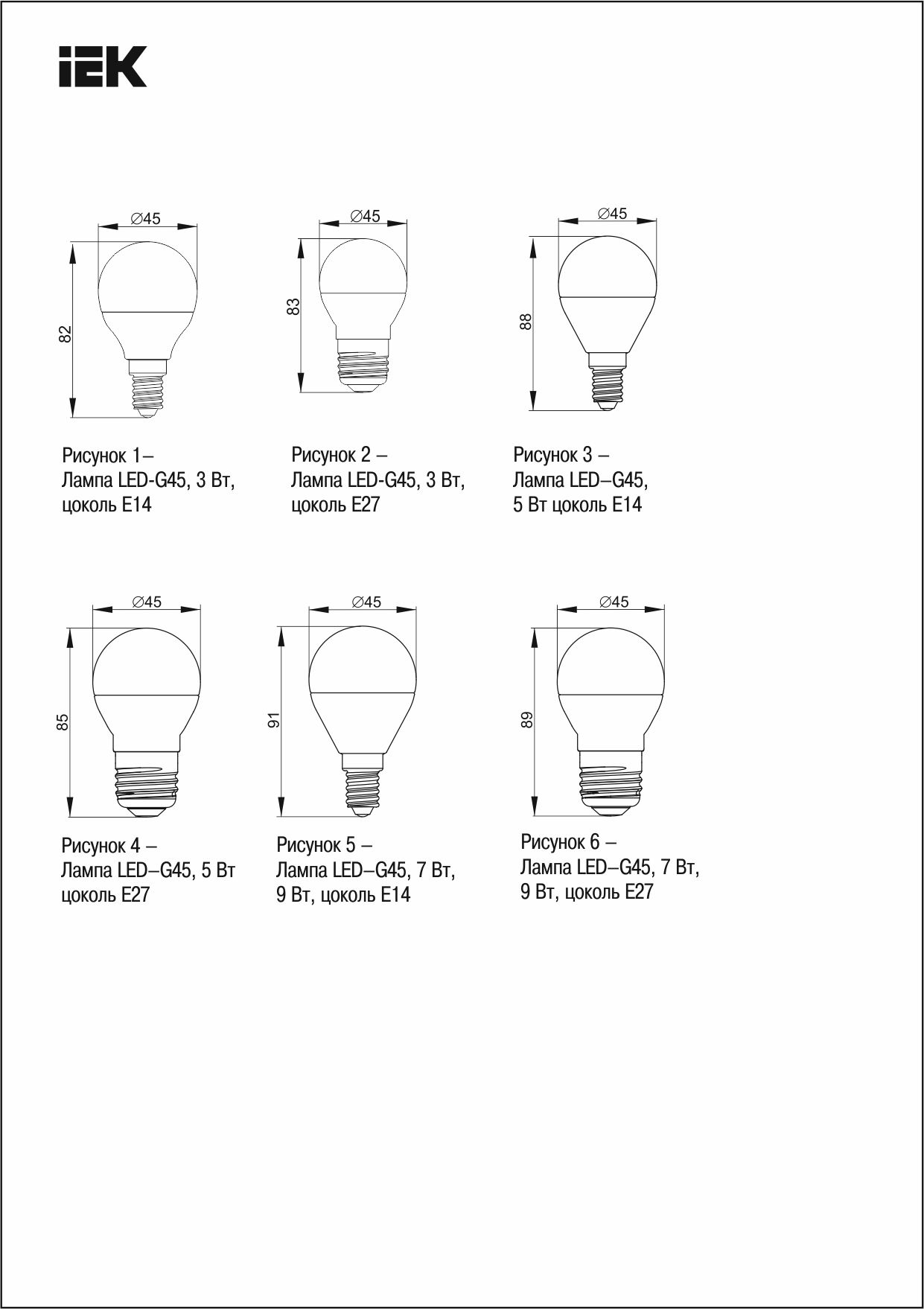 Жарықдиодты шам ECO G45 шар 7Вт 230В 3000К E14 IEK