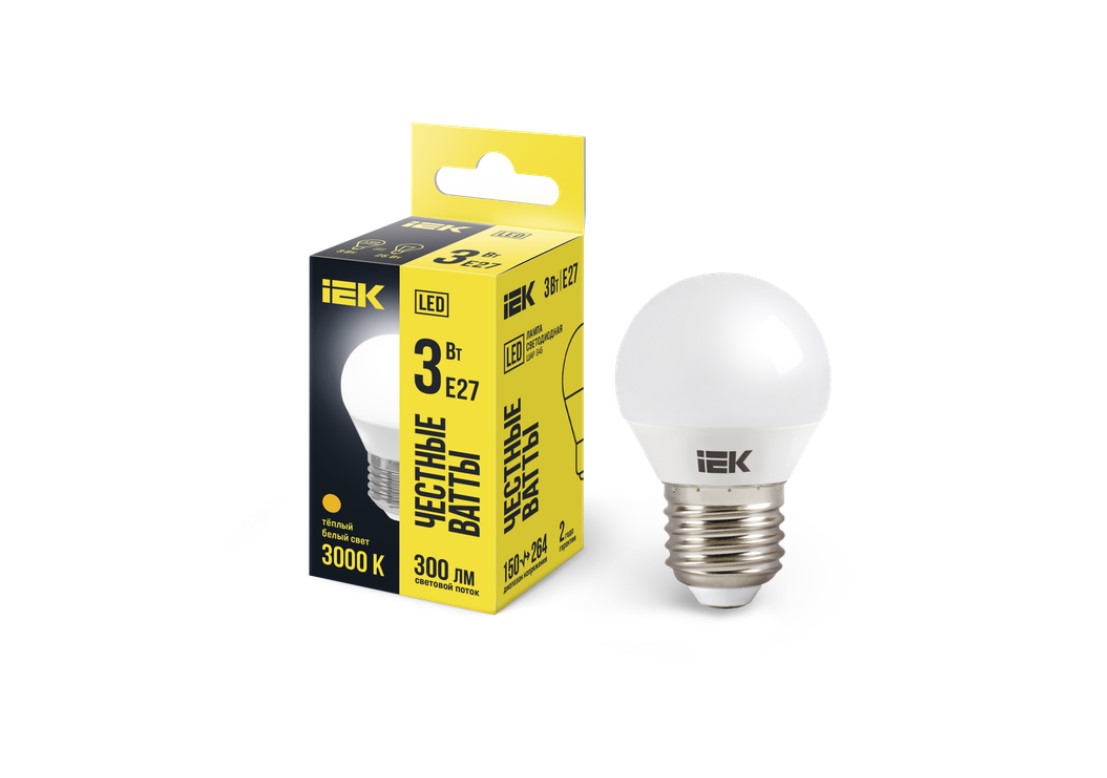Жарықдиодты шамшырақ G45 шар 3Вт 230В 3000К E27 IEK