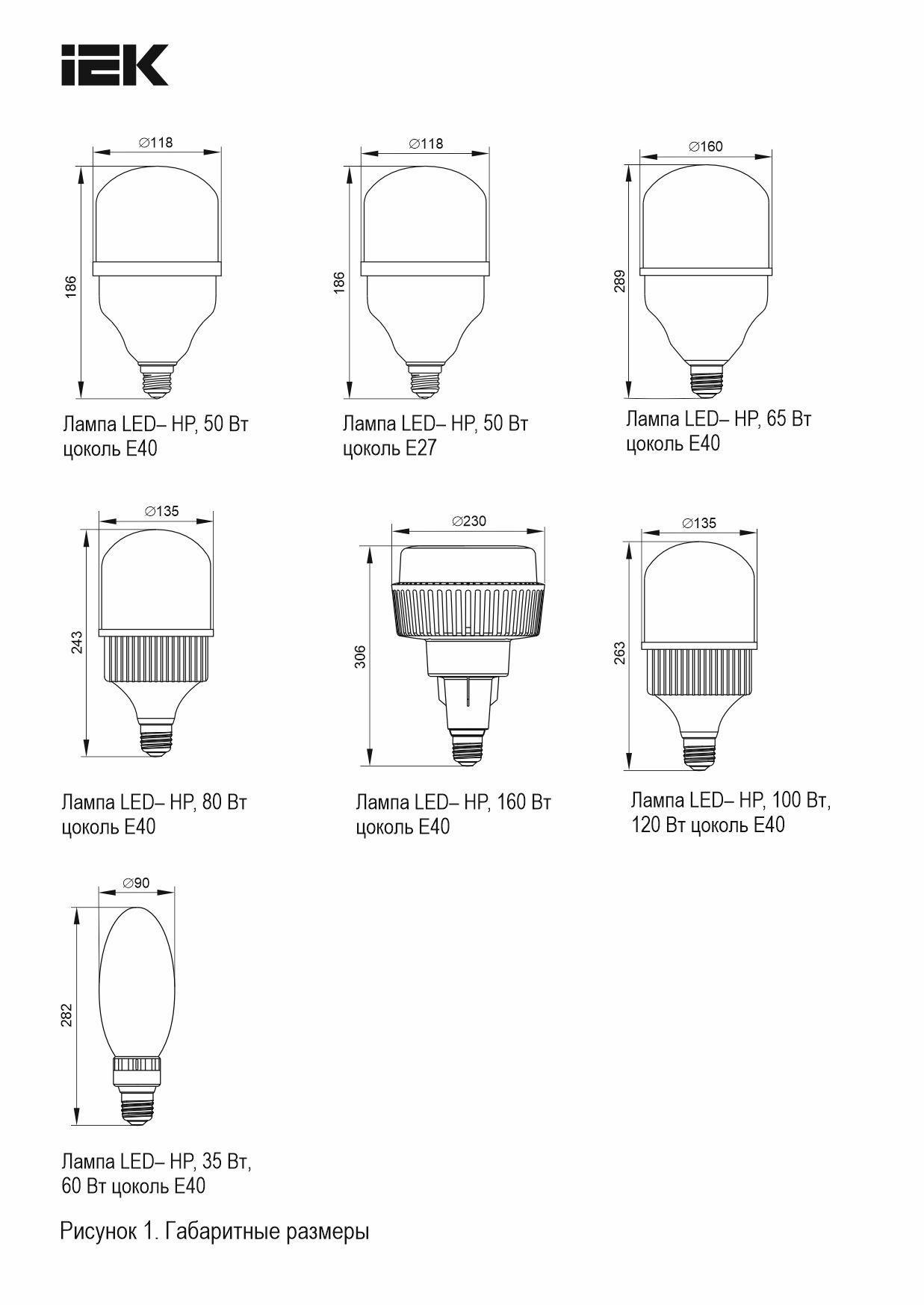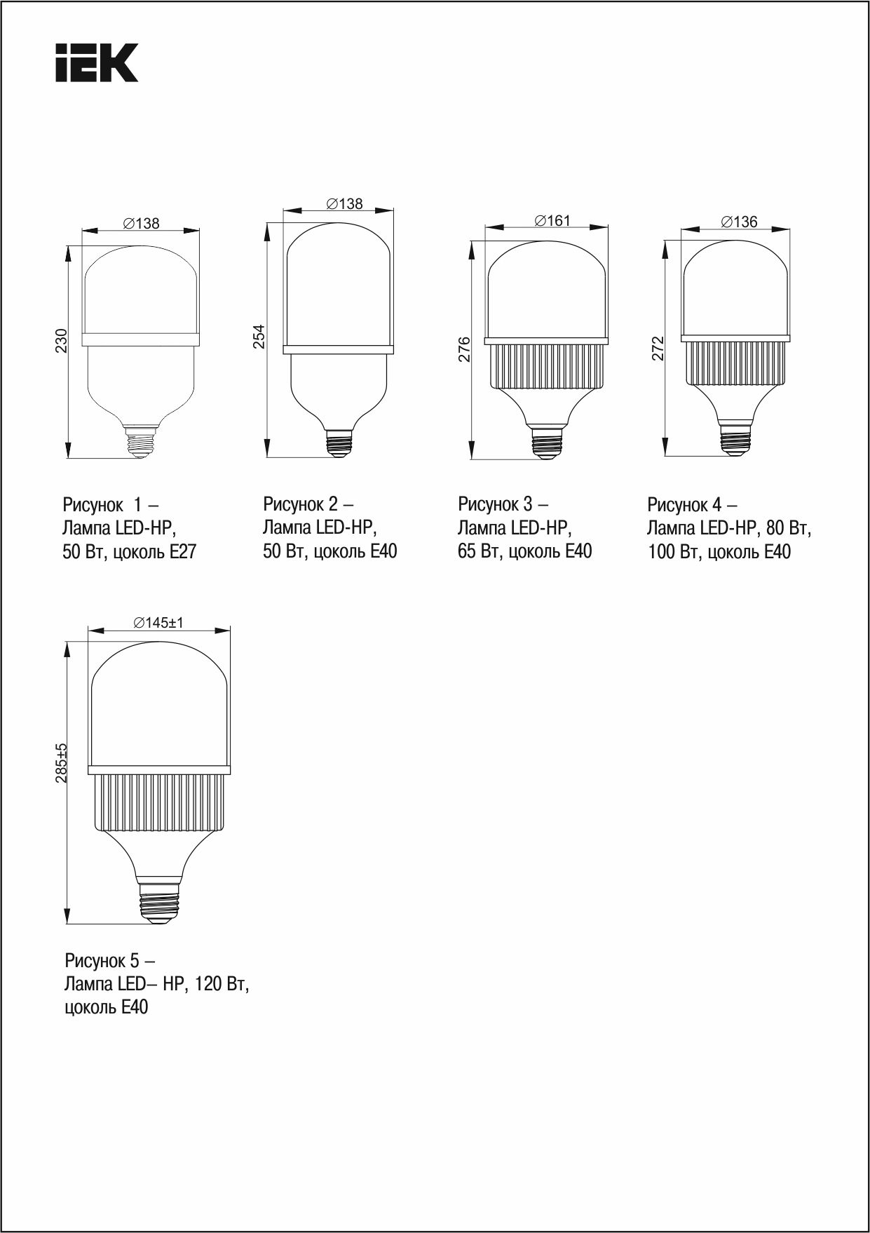 Жарықдиодты шам HP 50Вт 230В 6500К E40 ИЭК