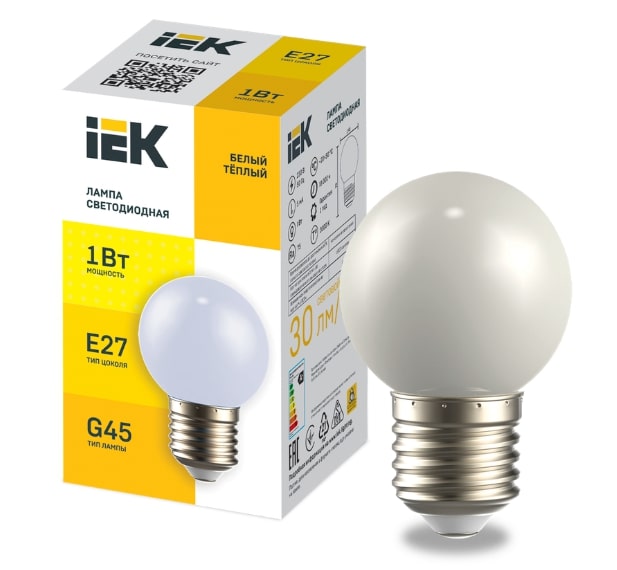 LIGHTING Жарықдиодты шам, сәндік G45 шар 1Вт 230В жылы ақ E27 ИЭК