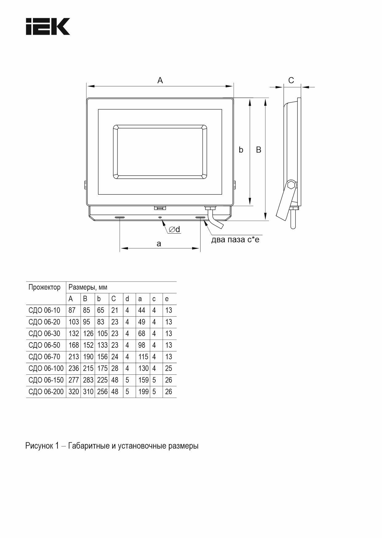 Прожектор, жарықдиодты СДО 06-70 IP65 4000К қара IEK