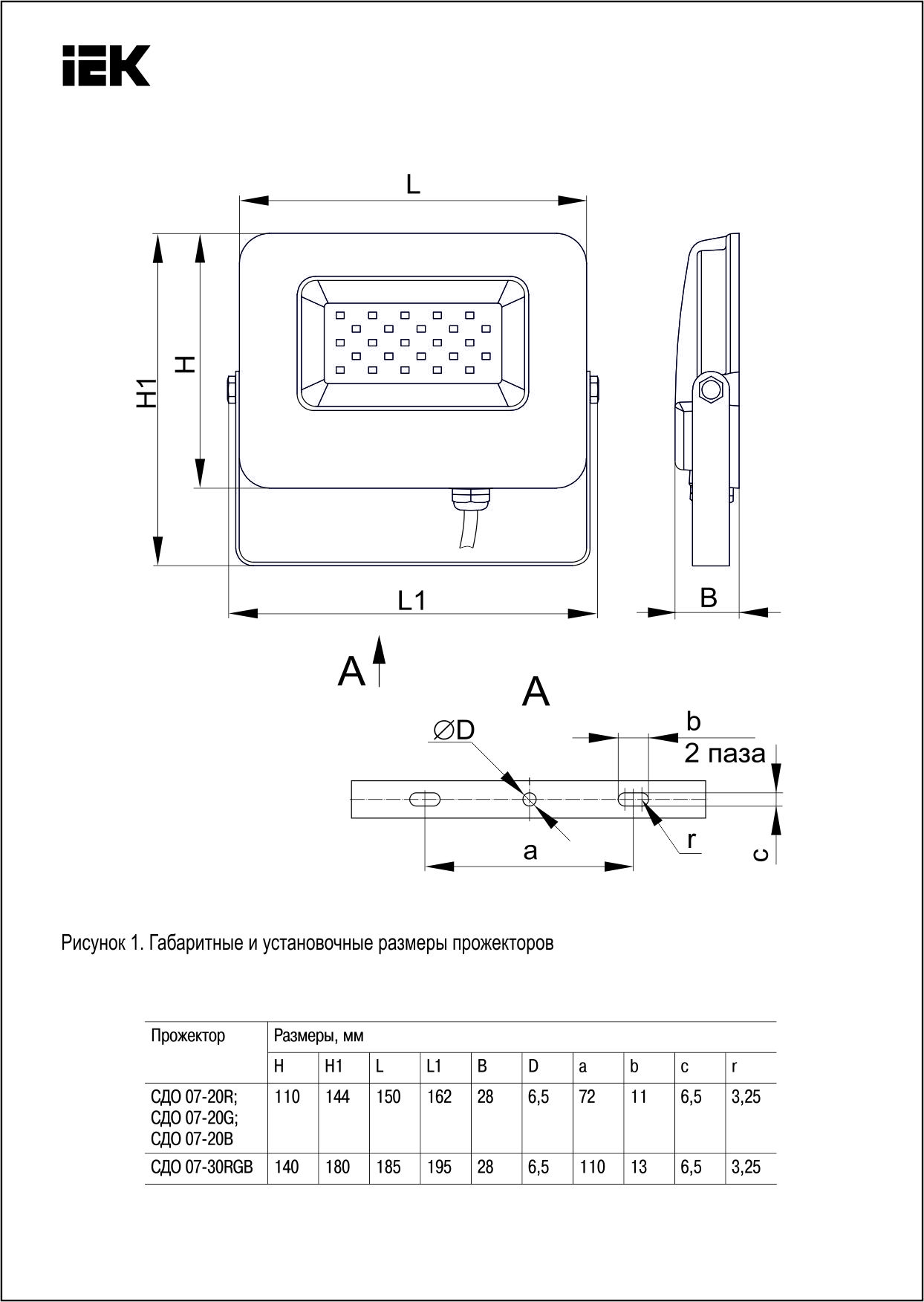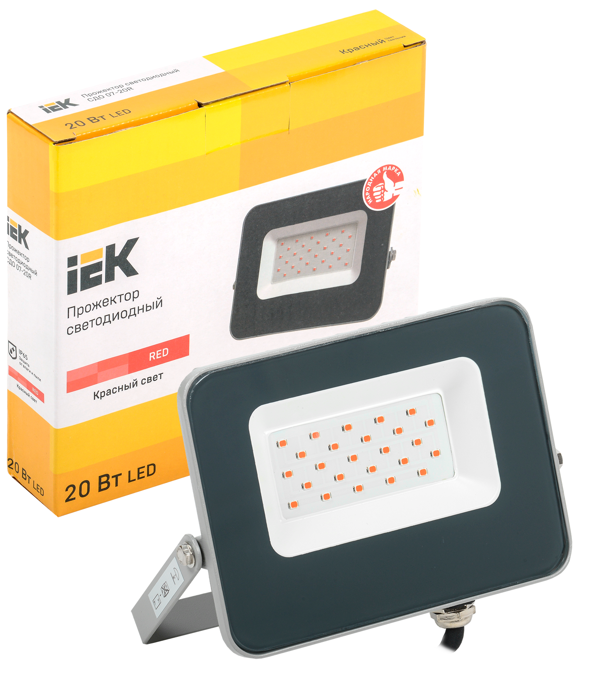 Жарықдиодты прожектор СДО 07-20R red IP65 сұр IEK