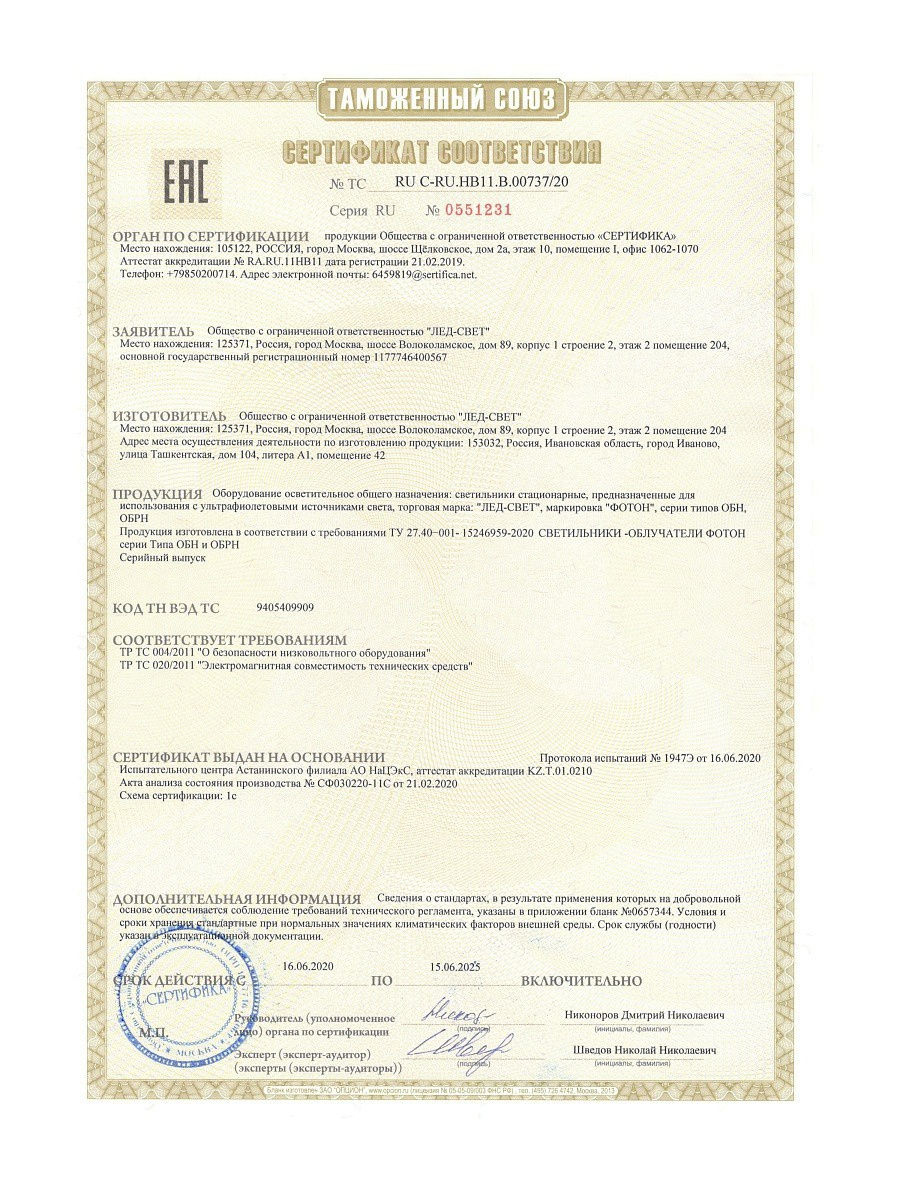 Бактерицидтік сәулелендіргіш (ОБН 18) 18Вт шаммен бірге