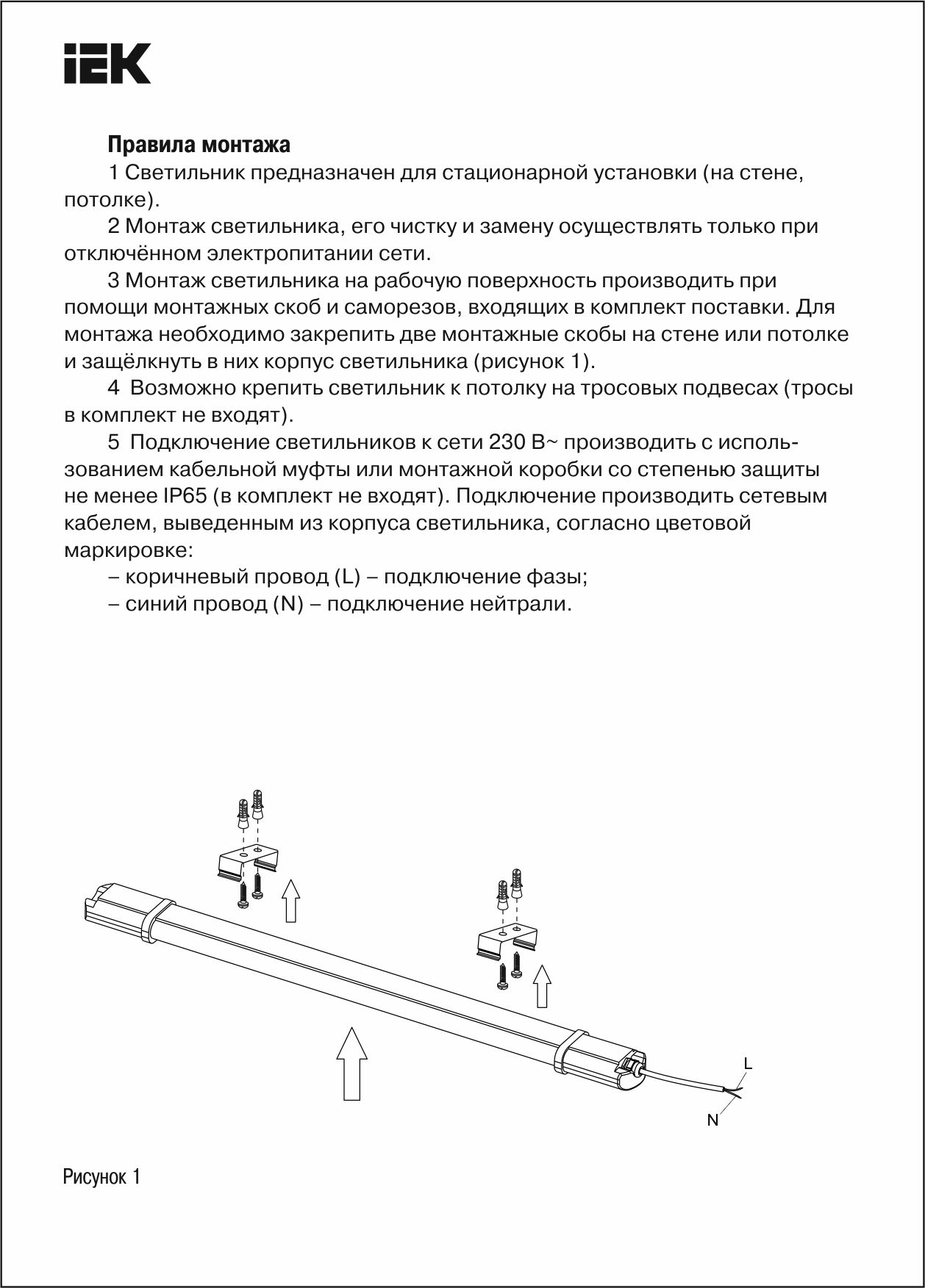 Шамшырақ ДСП 1312 48Вт 4000К IP65 белый пластик IEK