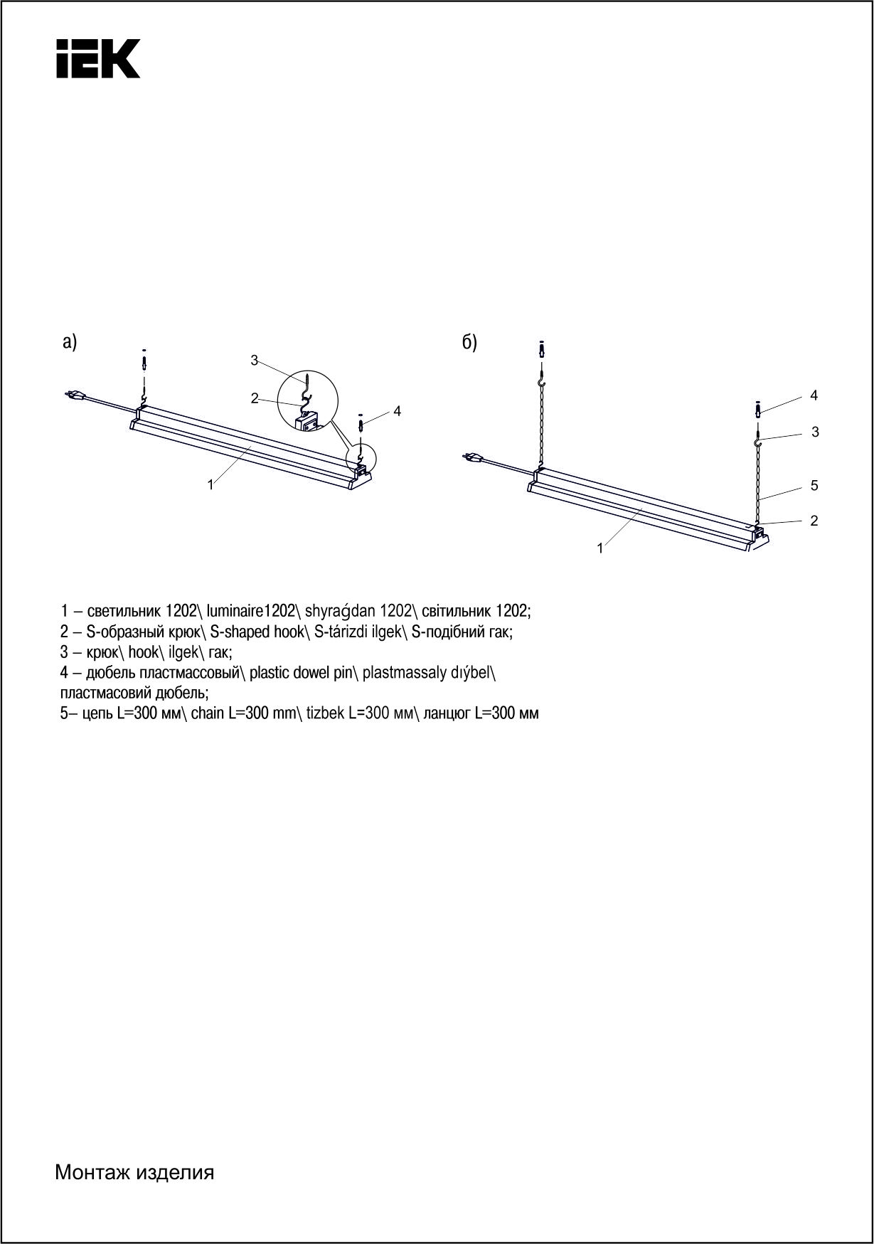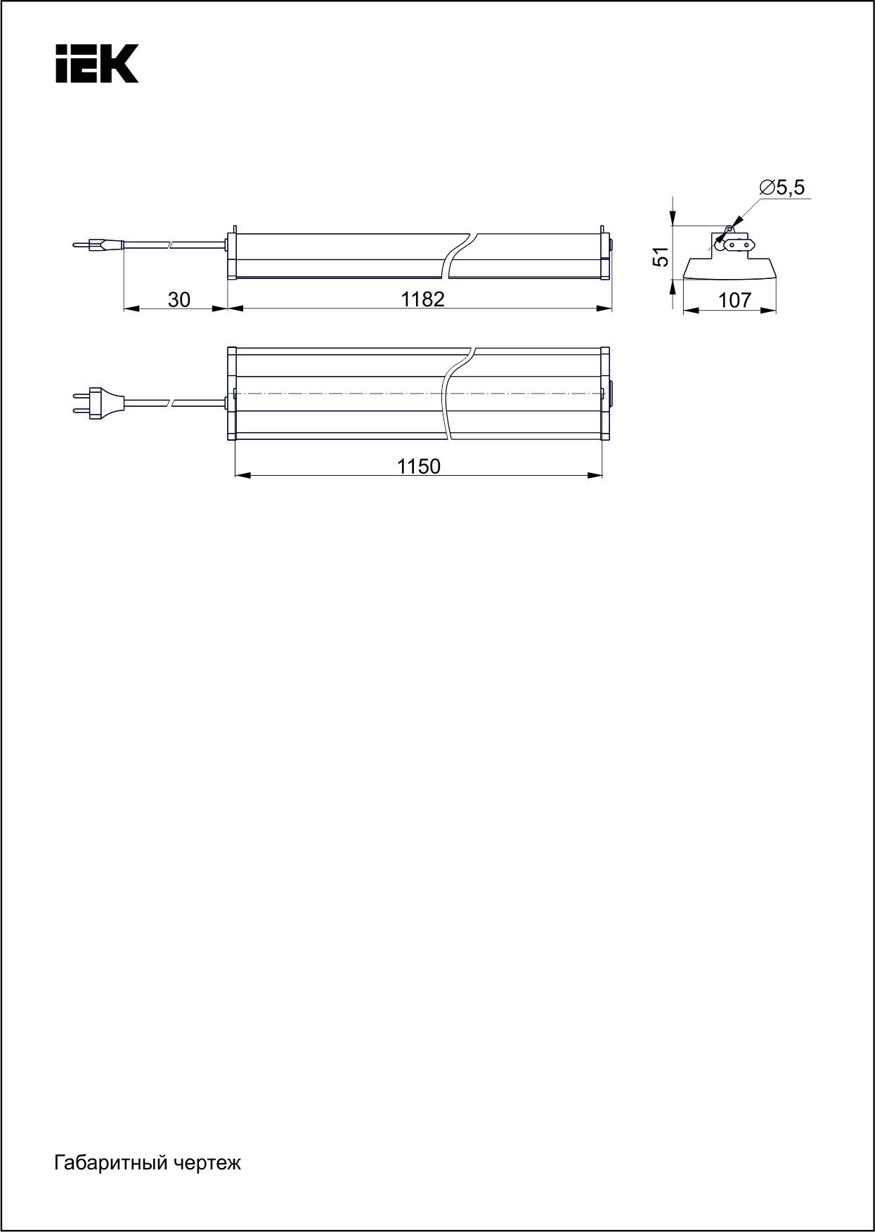 Шам LED сызықтық 1201 36Вт 5000К 1200*107*52мм ИЭК