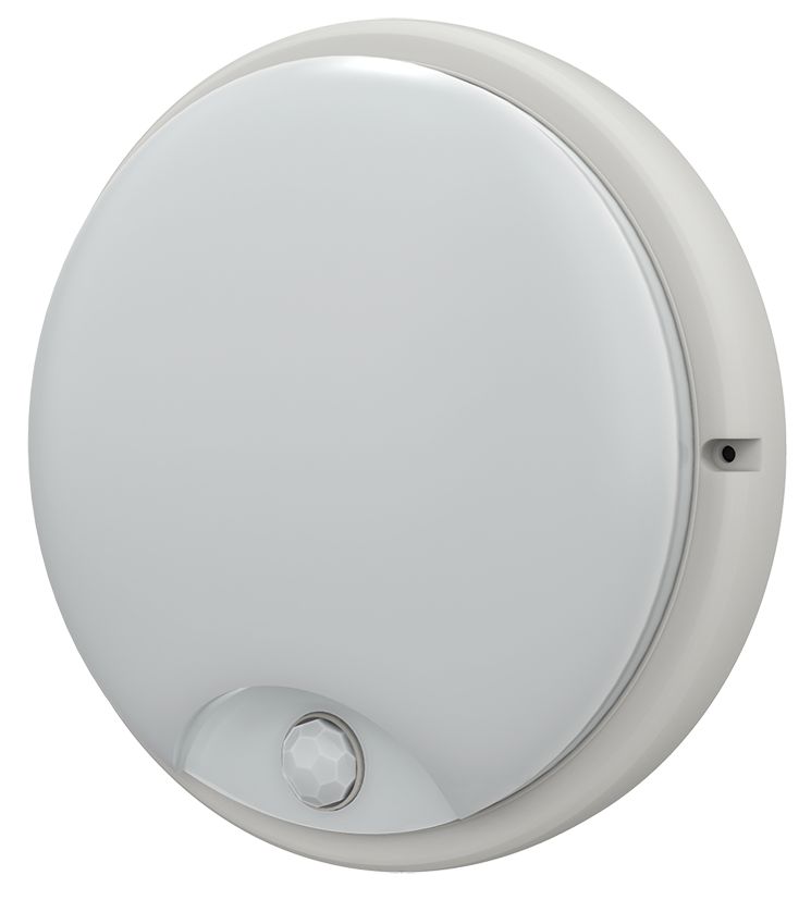Жарықдиодты шамшырақ ДПО 4100Д 12Вт 4000K IP54 домалақ, ақ, инфрақызыл қозғалыс датчигі бар IEK