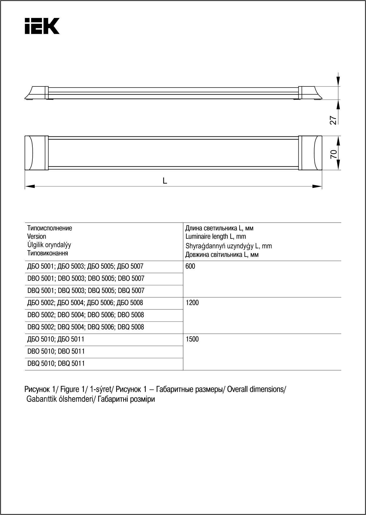Жарықдиодты шамшырақ, жолақты ДБО 5008 36Вт 6500К IP20 1200мм алюминий IEK