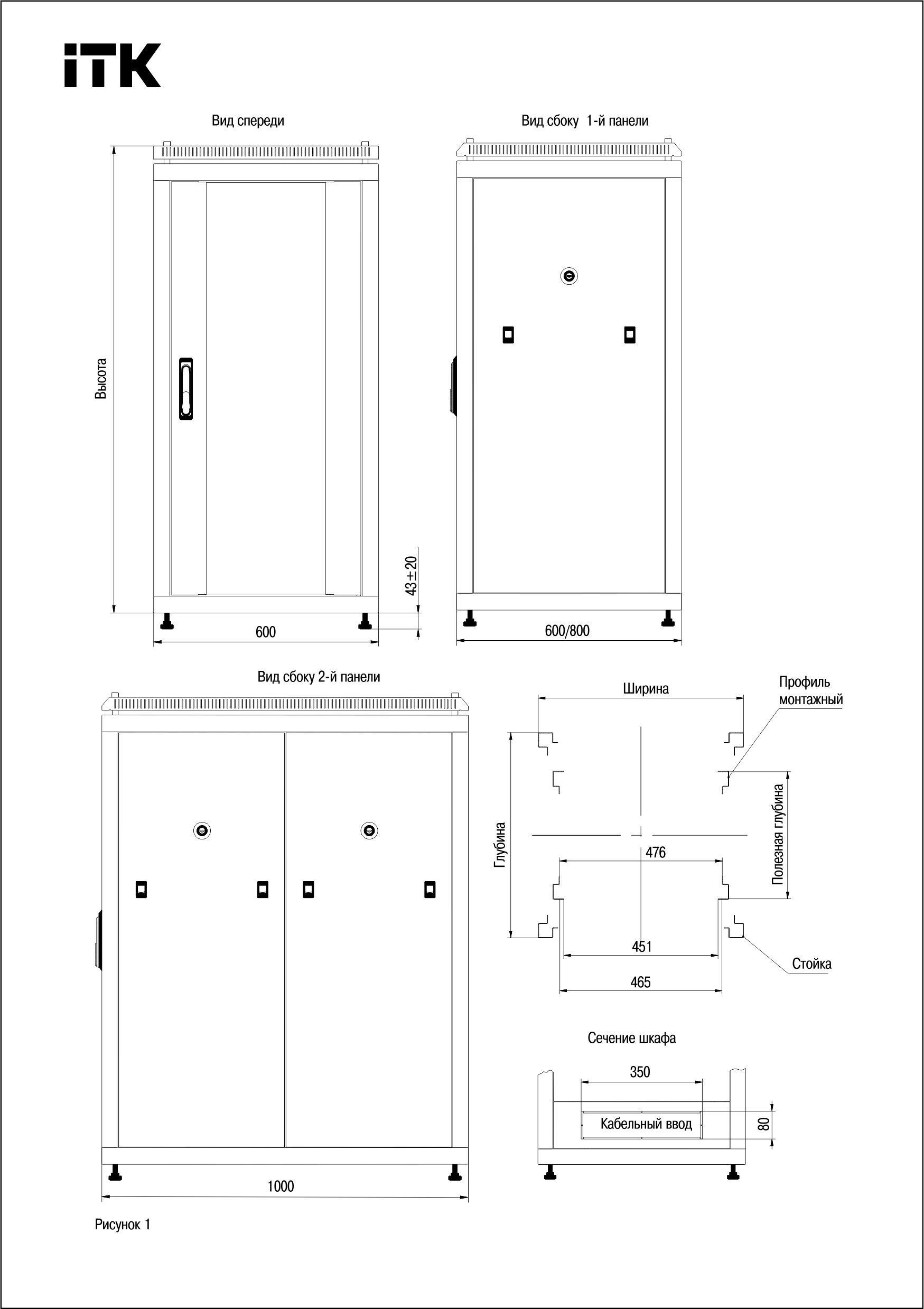 ITK LINEA N Шкаф желілік 19" 24U 600х600мм алдыңғы есігі перфорацияланған, қара