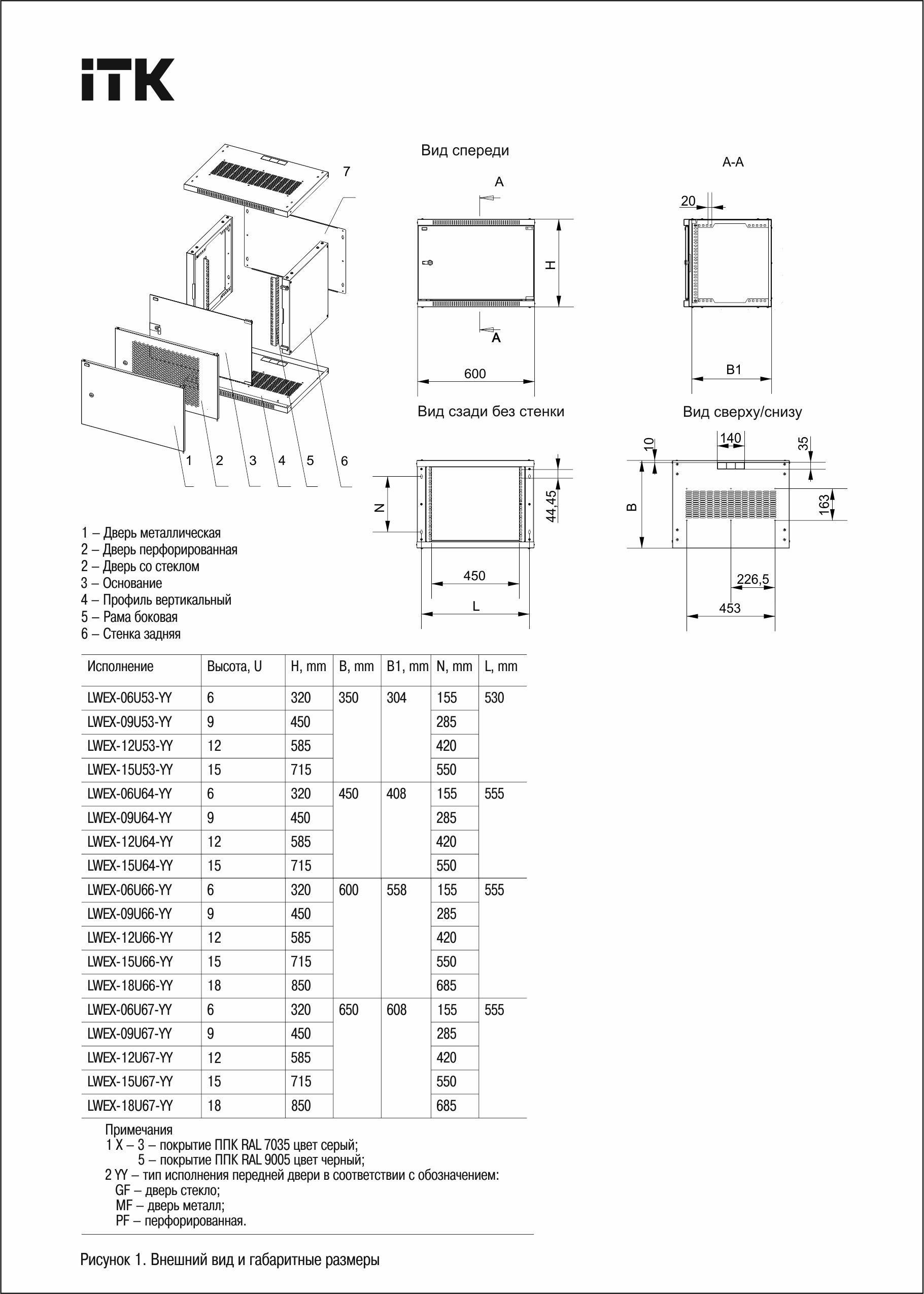 ITK Қабырғалы шкафы LINEA WE 12U 550х350мм шыны есік, қара