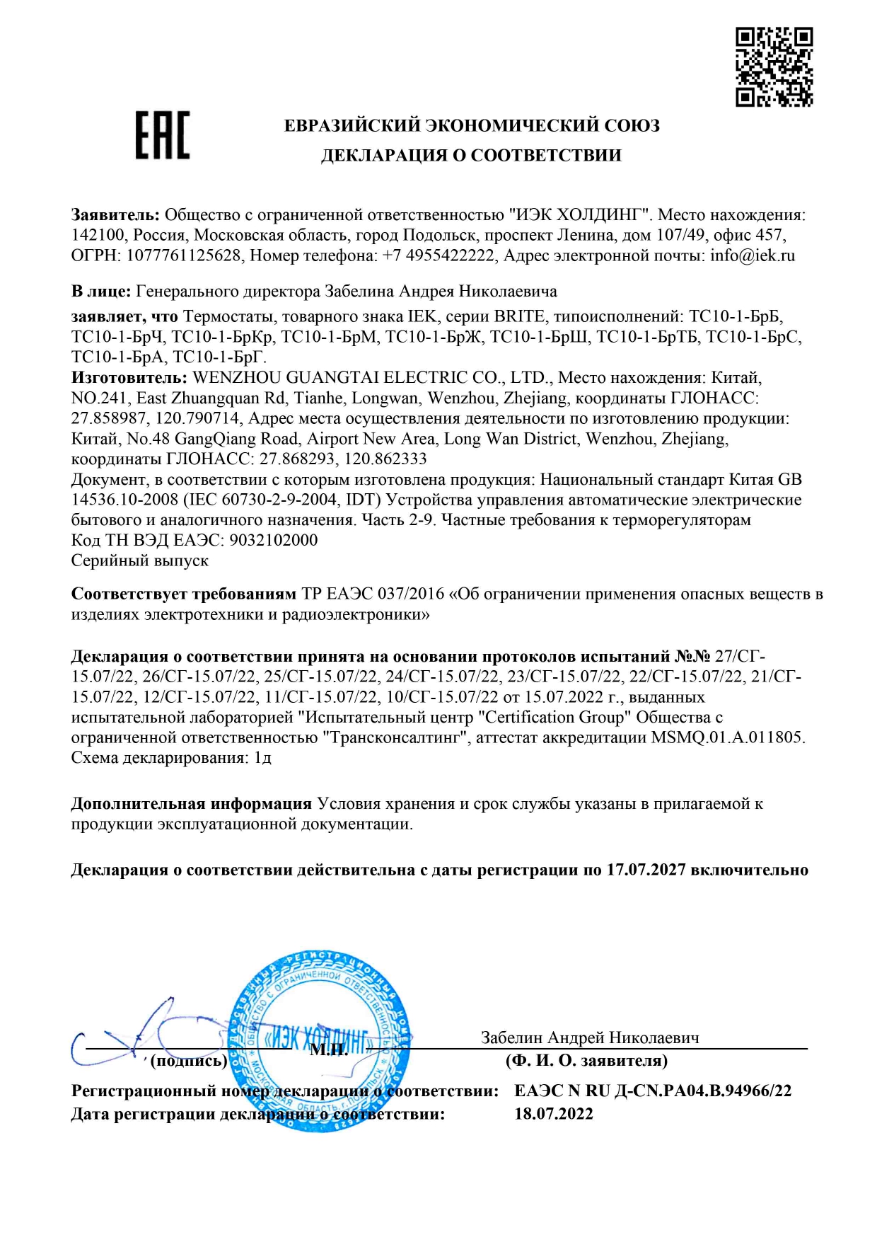 BRITE ТС10-1-БрГ индикациясы бар электронды термостат графит ИЭК